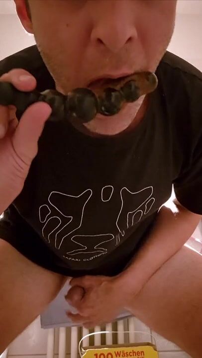 Scat boy taste shit from dildo. Shit in moth