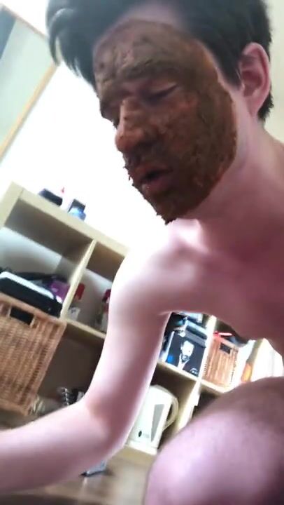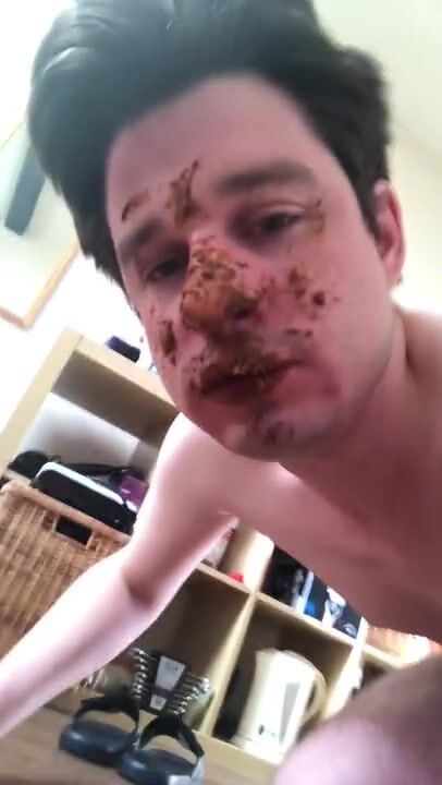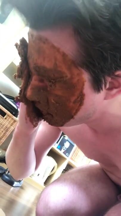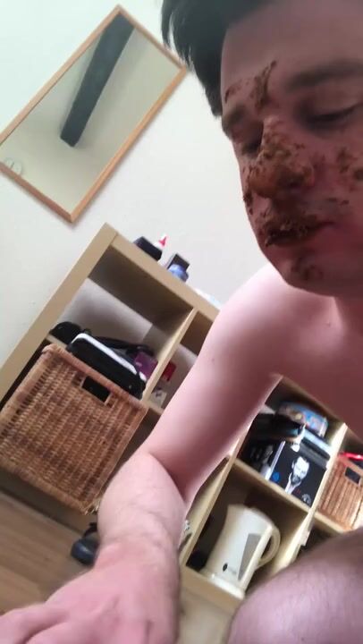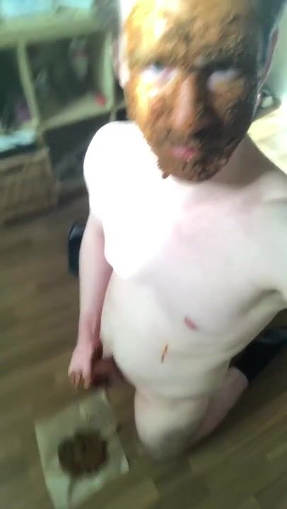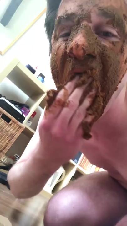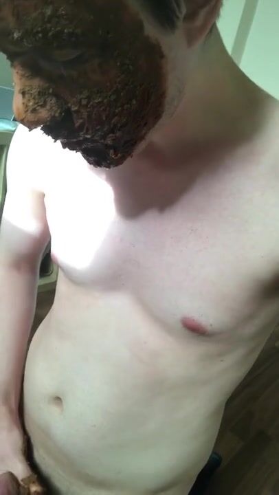 German scat fag eating and smearing with shit