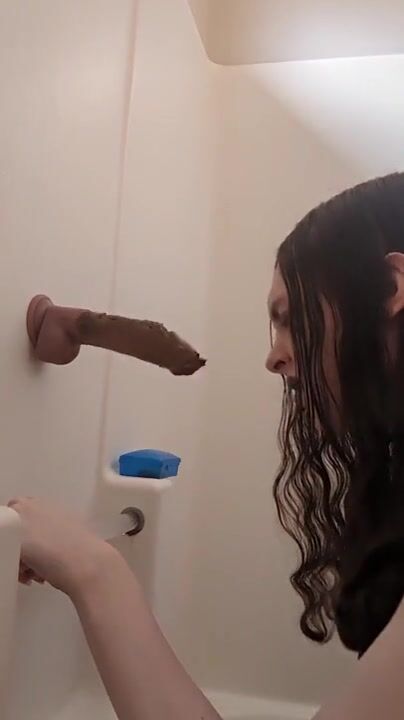 Goth trans sissy fucks scat down her throat