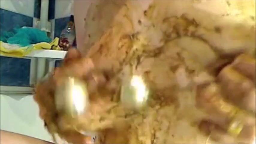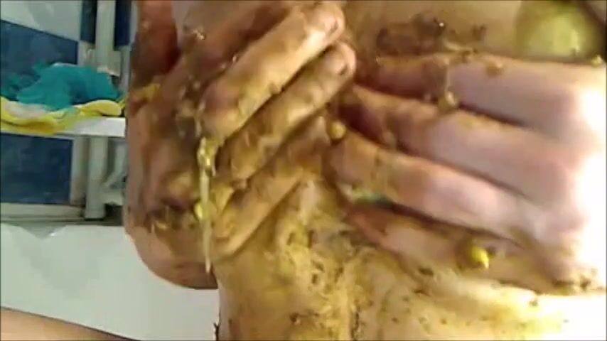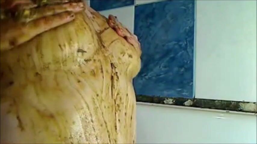 woman smearing shit on boobs