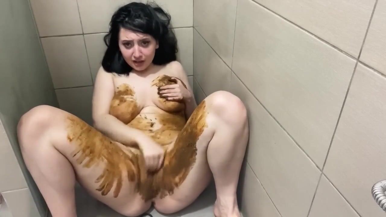 Girl shitting in the shower and smering it on body