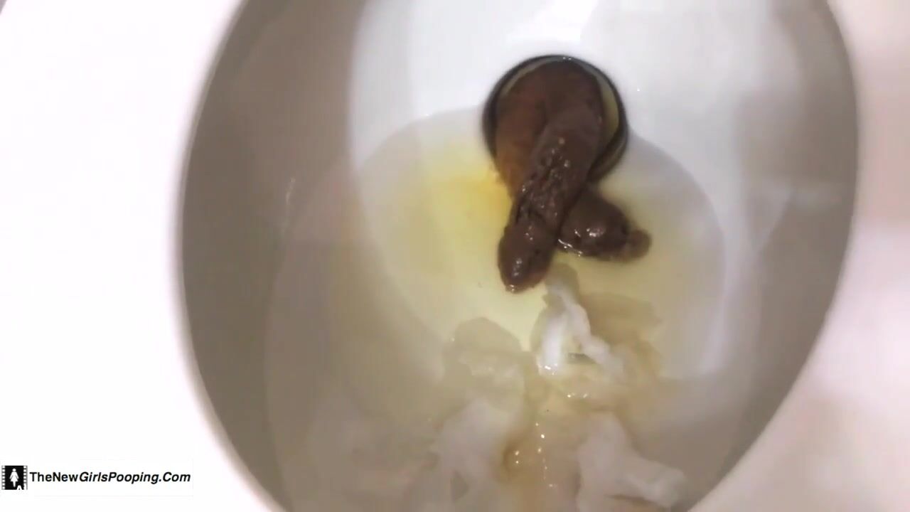 Girl with Black Hair pooping on the Toilet