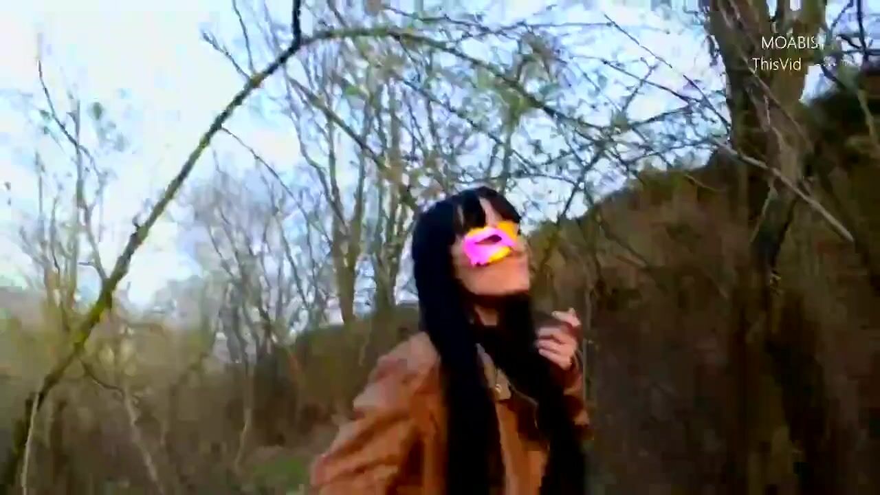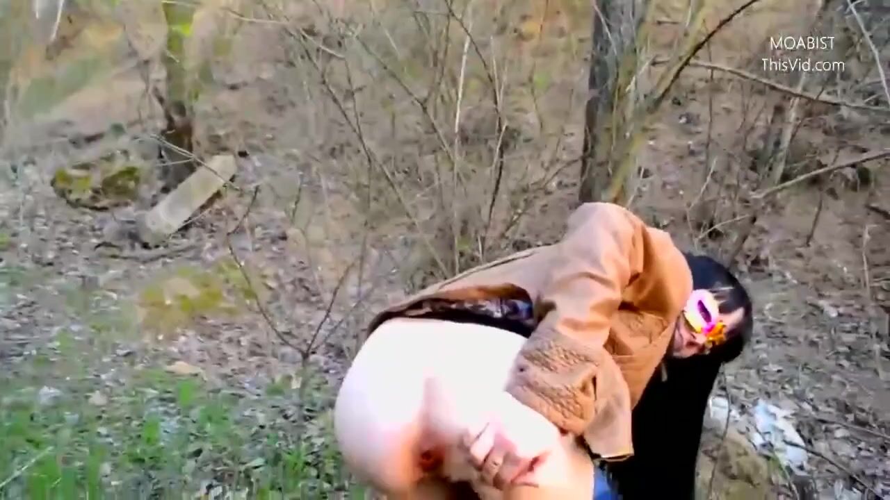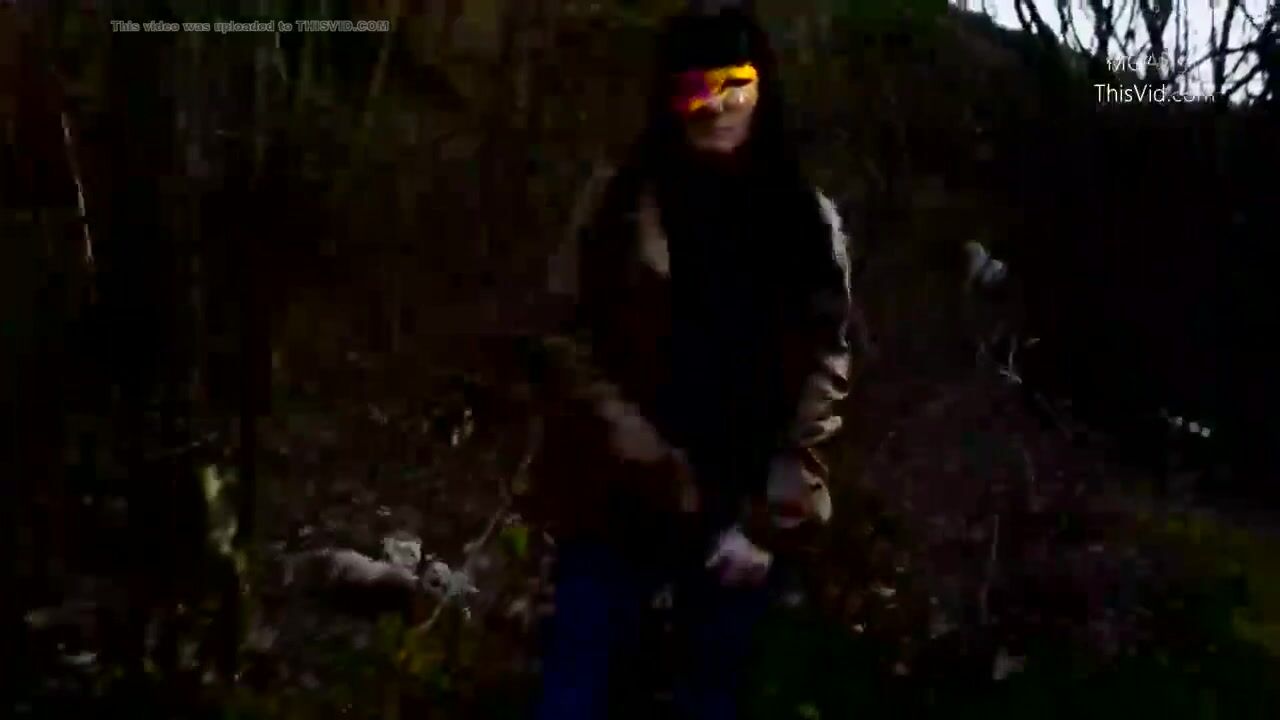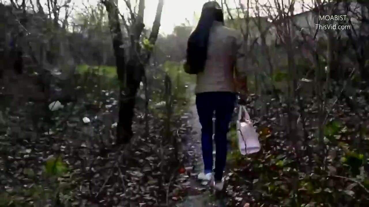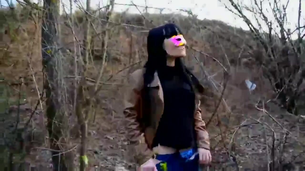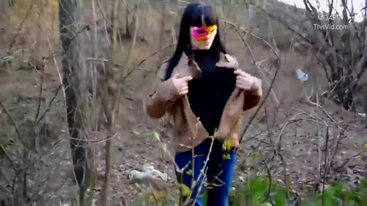 Public wood walking girl shits into panty and mast