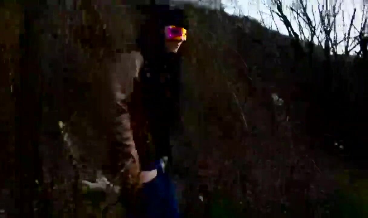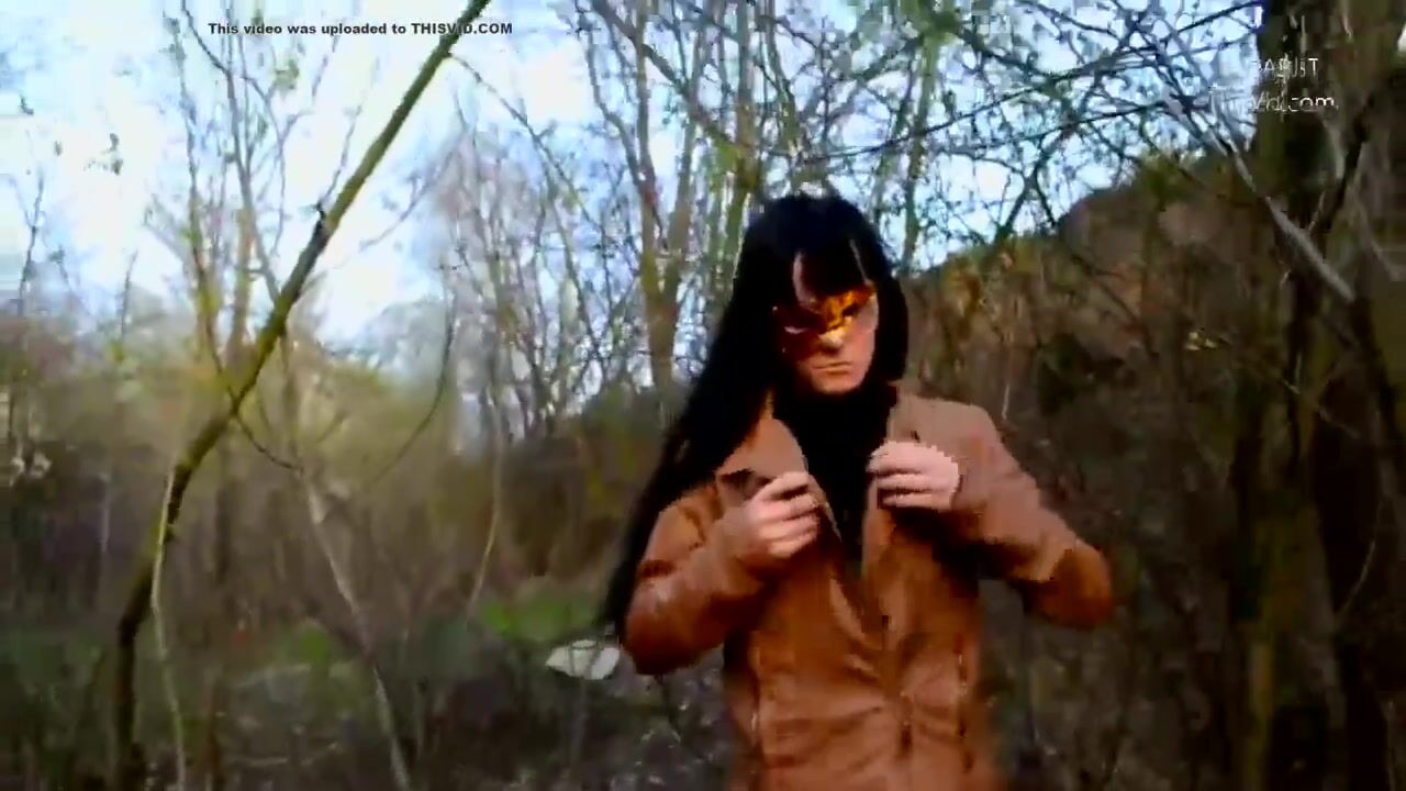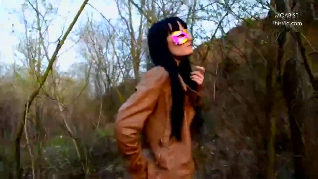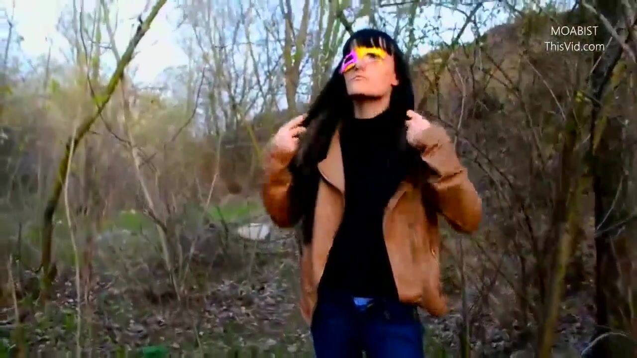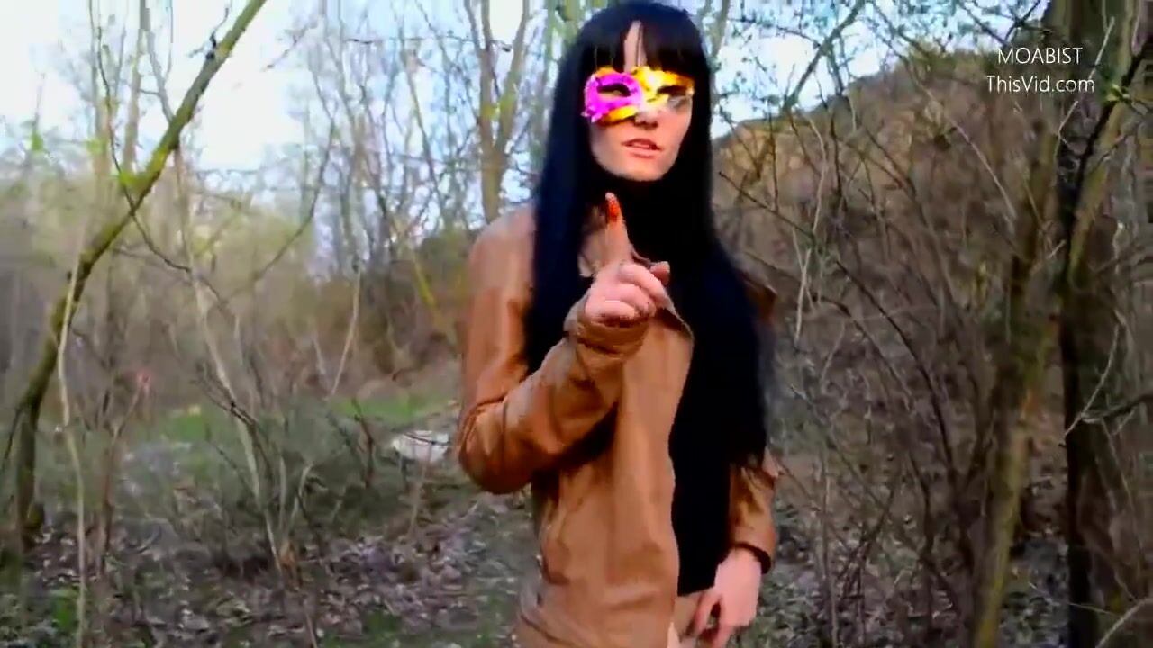 Public wood walking girl shits into panty and mast