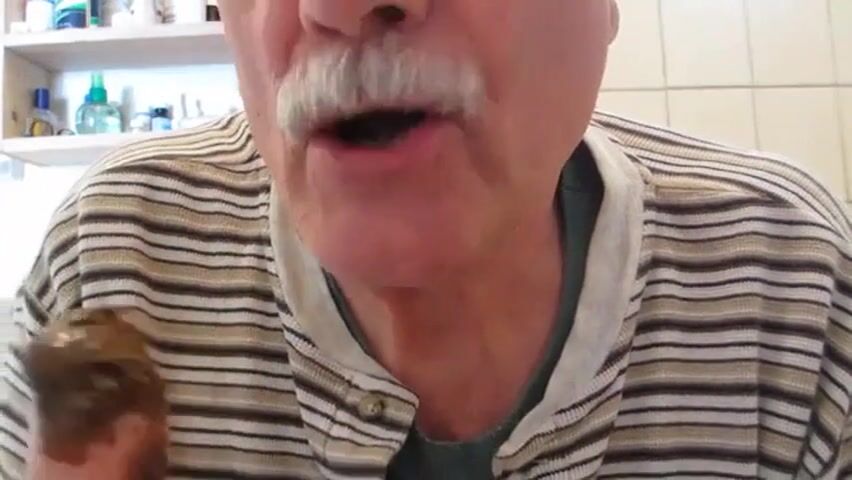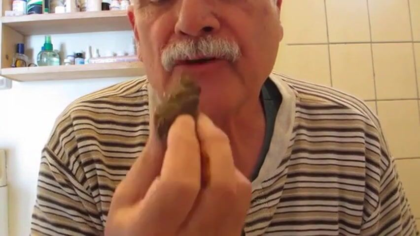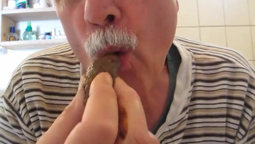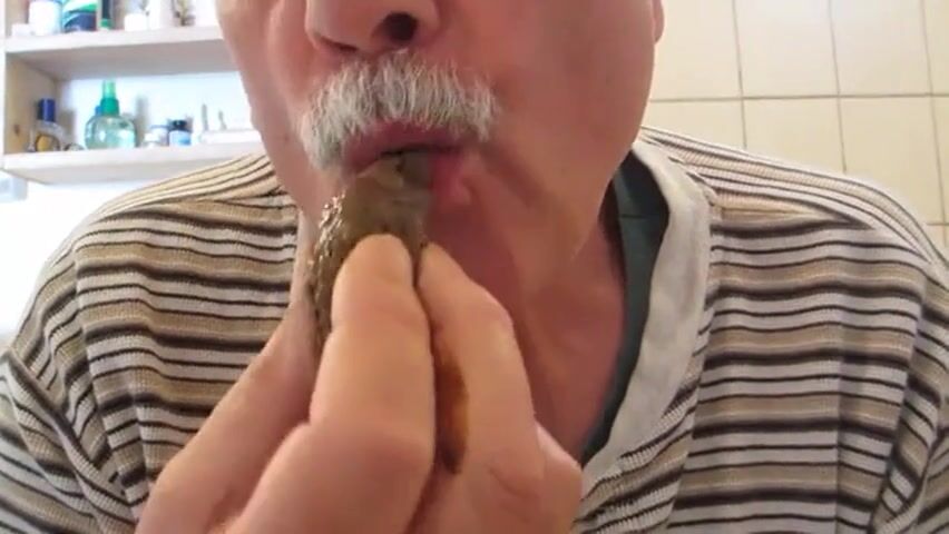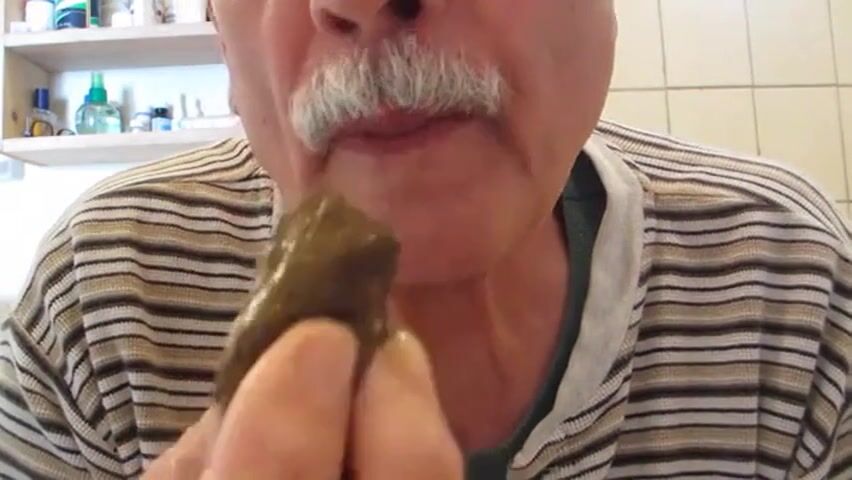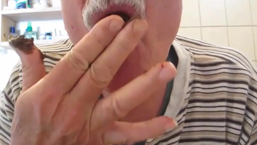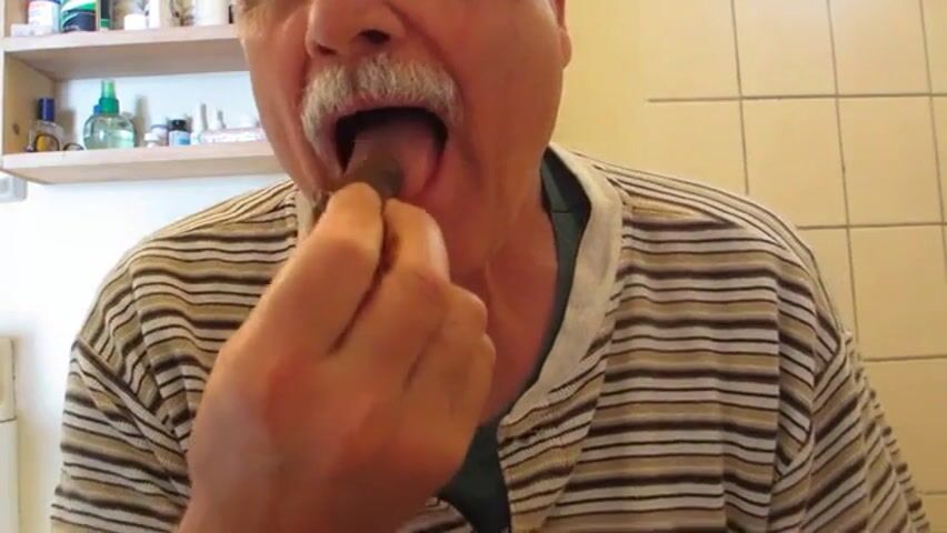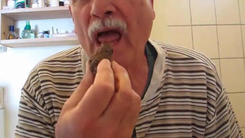 old man eating poop