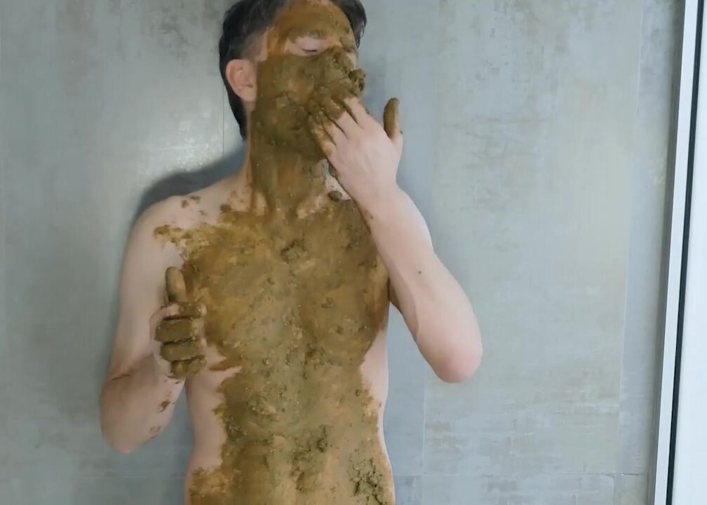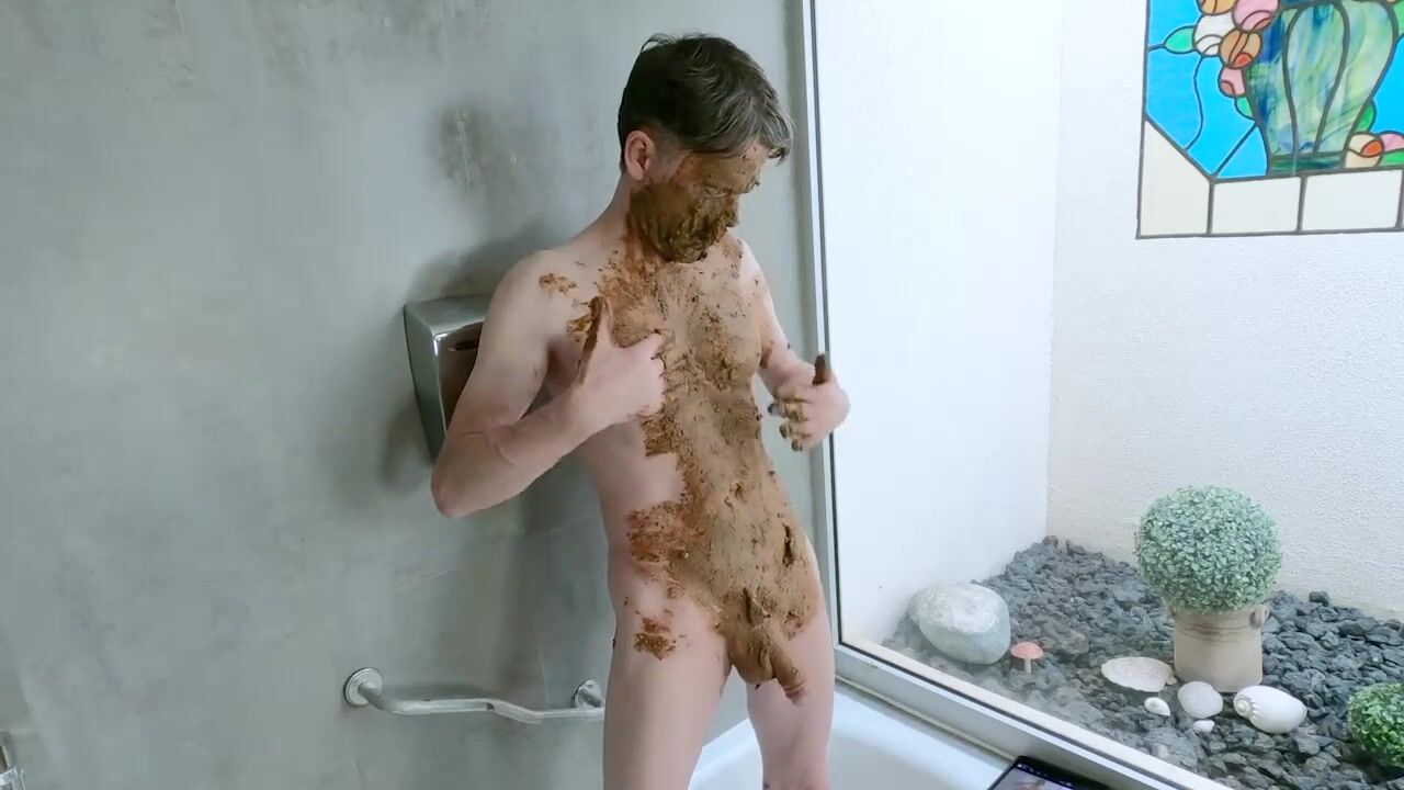 Pig Alex smears his face and body with shit