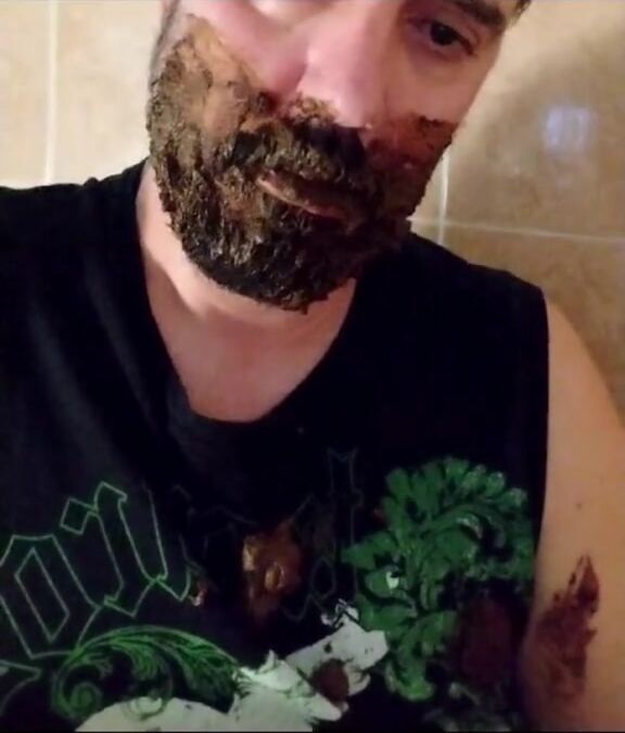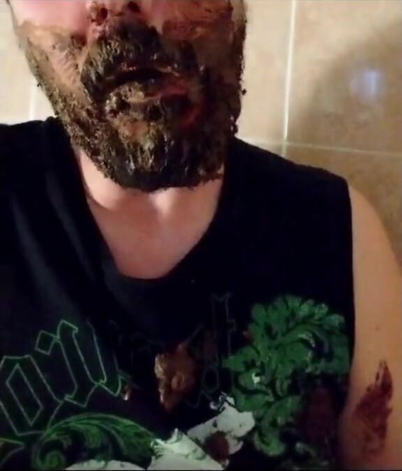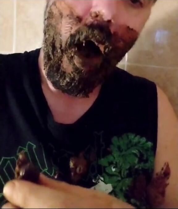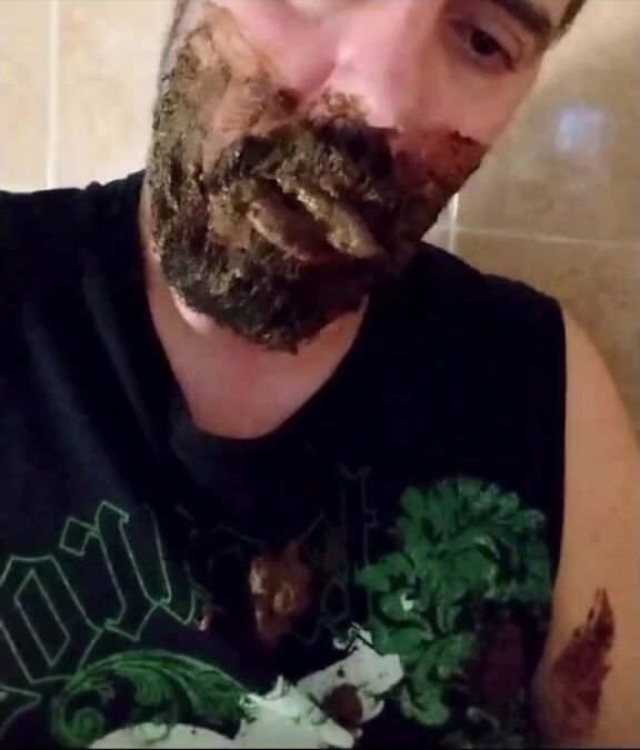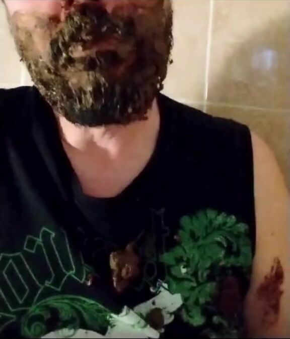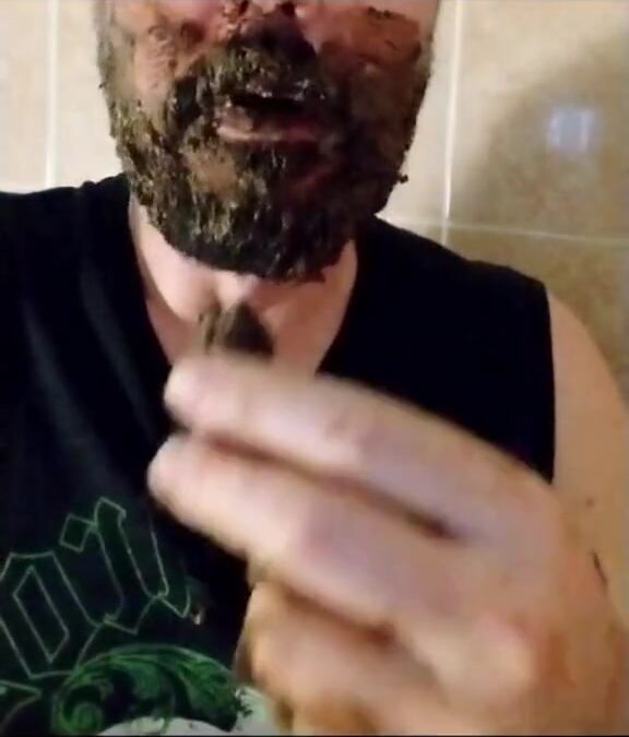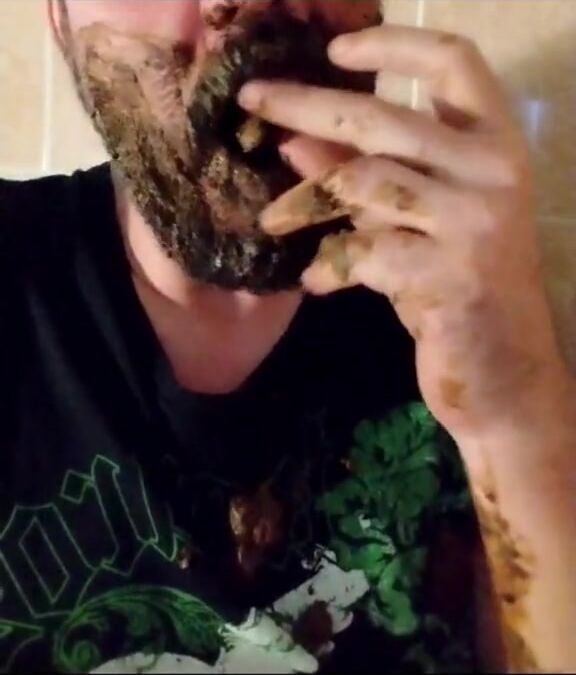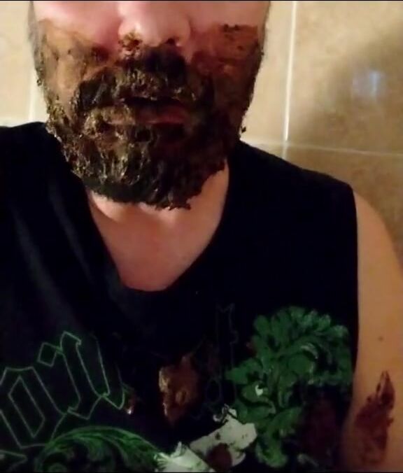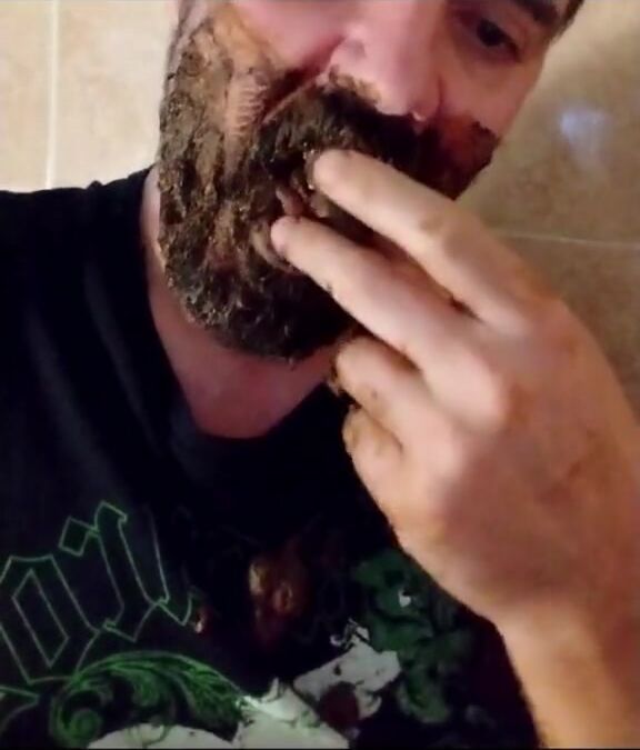 Shit-bearded guy swallows turds and burps