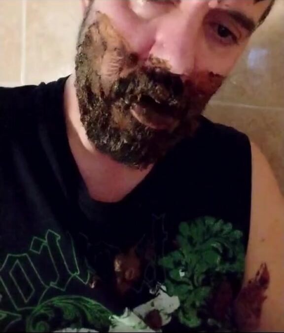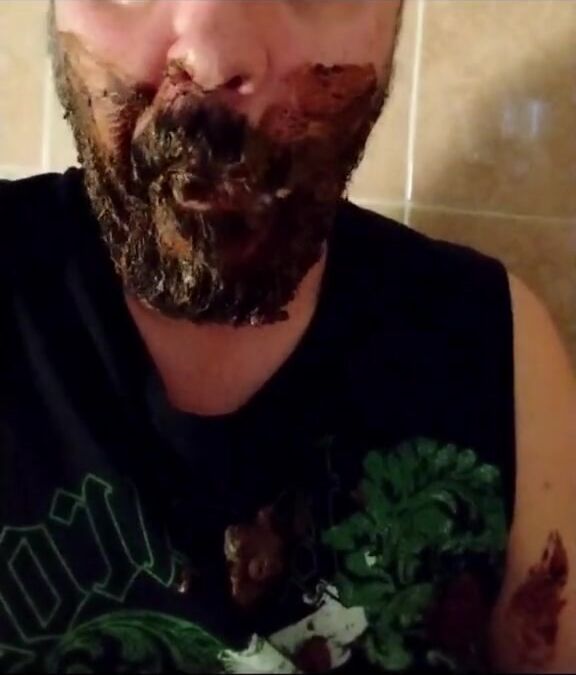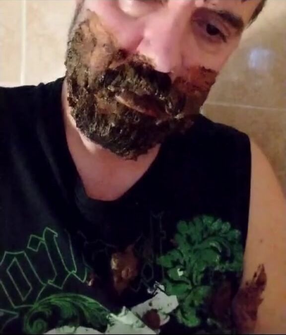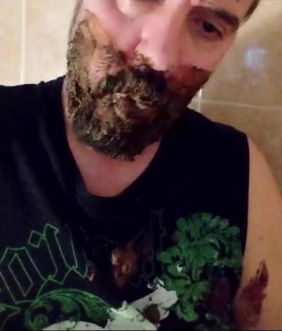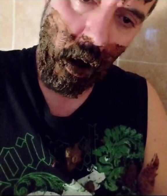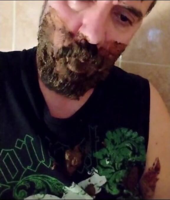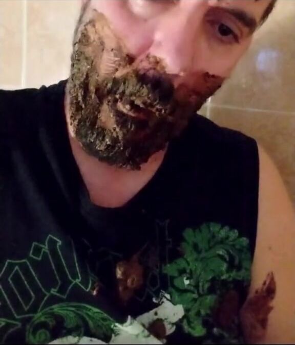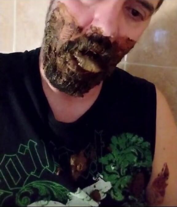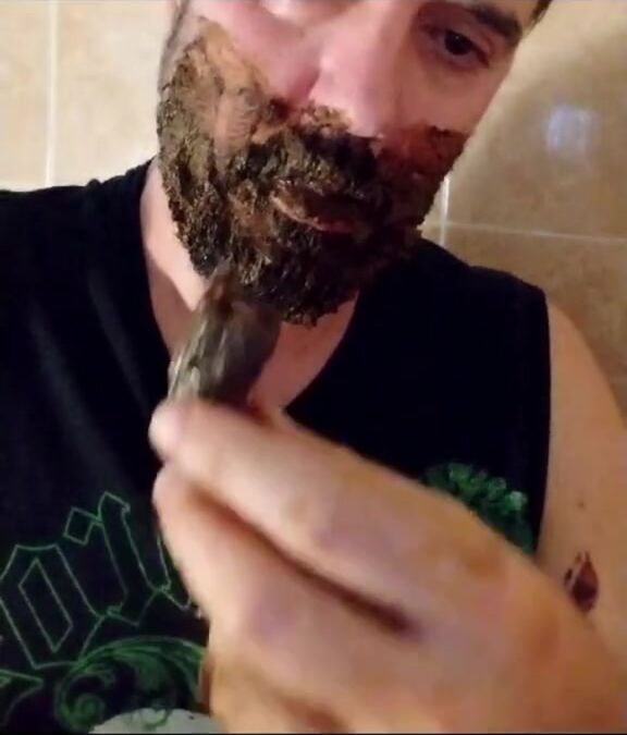 Shit-bearded guy swallows turds and burps