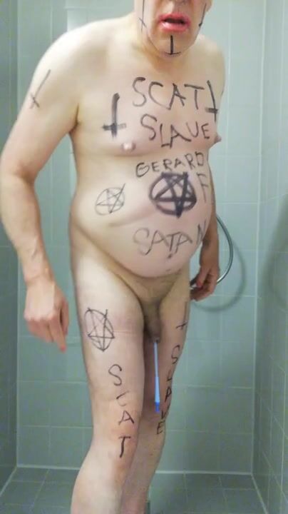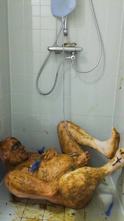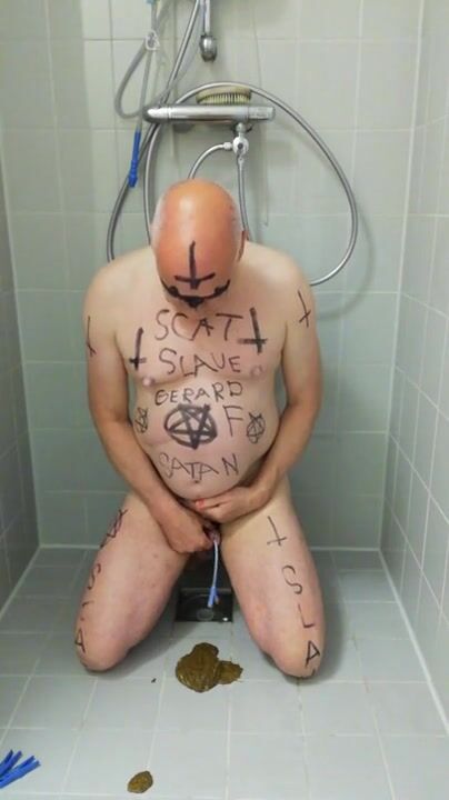 Satan slave takes a scat session during enema