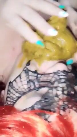 Girl shitting in the shower and smering it on body