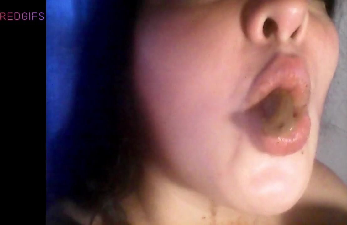 Amateur toilet whore chewing and swallowing a turd