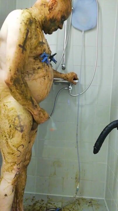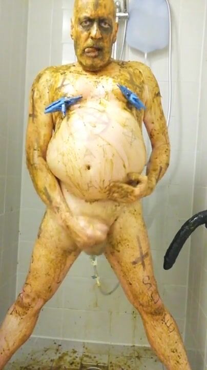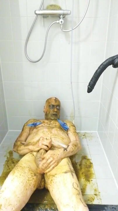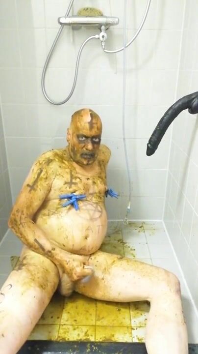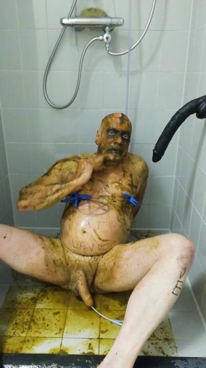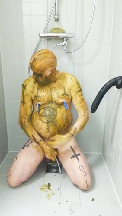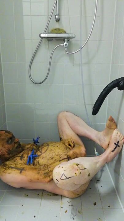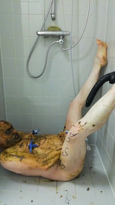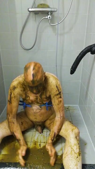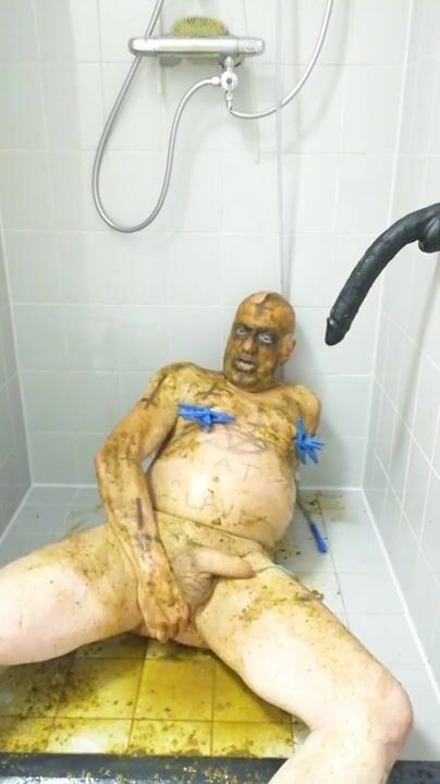 Girl shitting in the shower and smering it on body