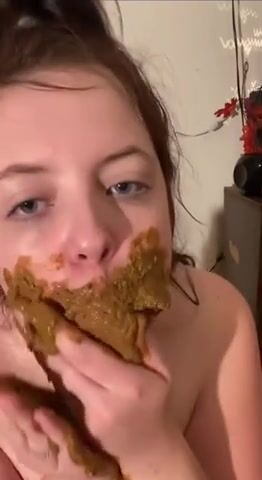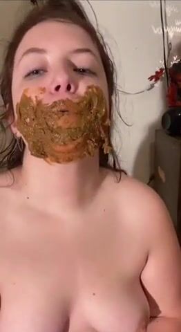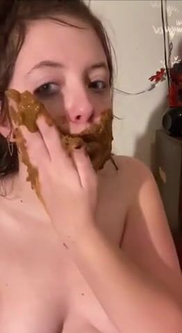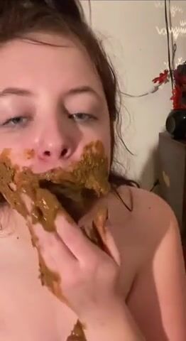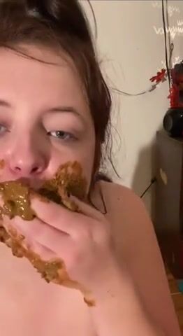 Chubby teen eats shit