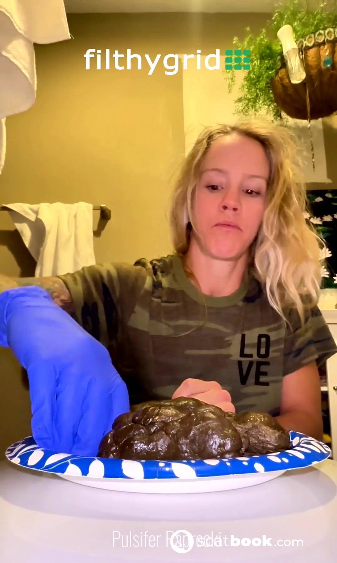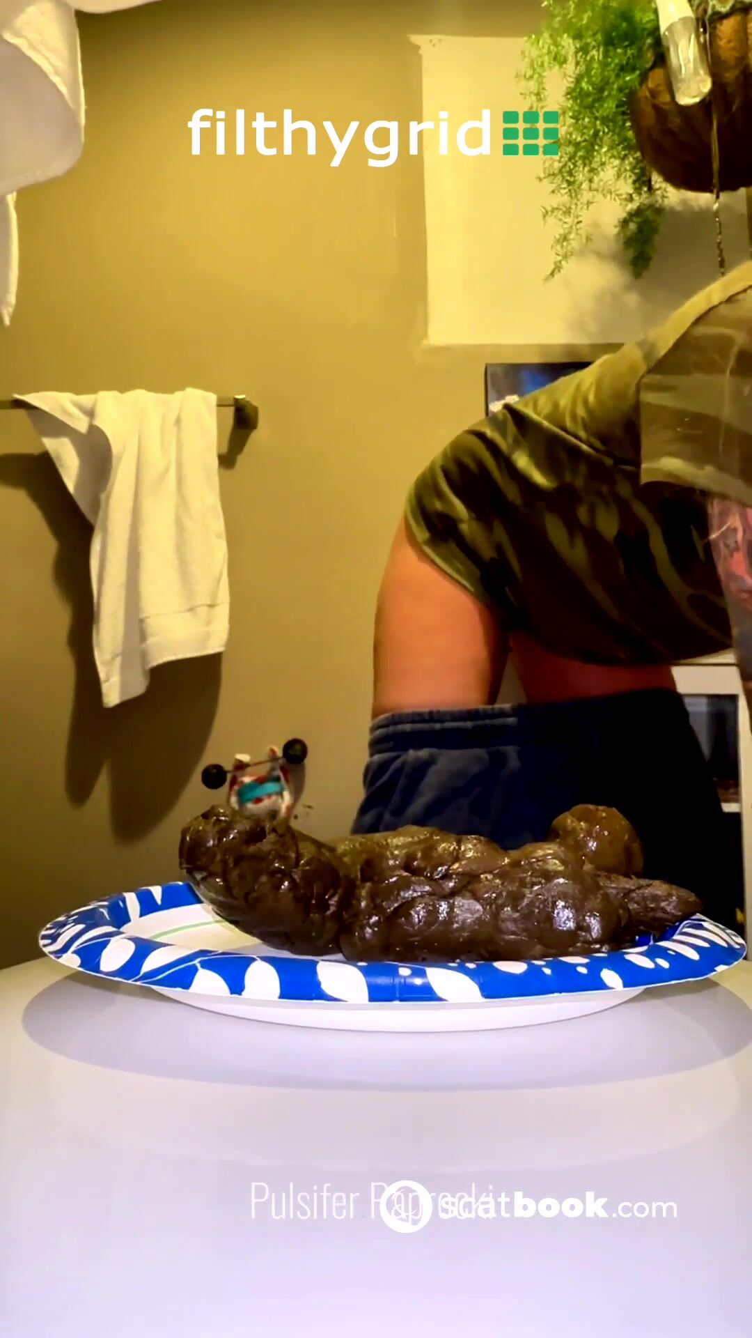 Foxyj squatting and pushing Mega turd out of my add