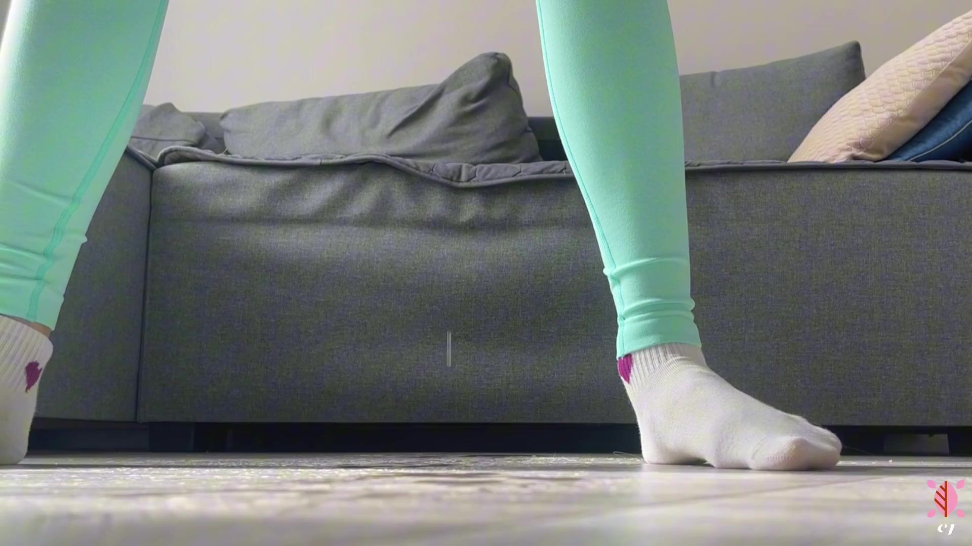 The girl soaked gym leggings with a squirting orgasm