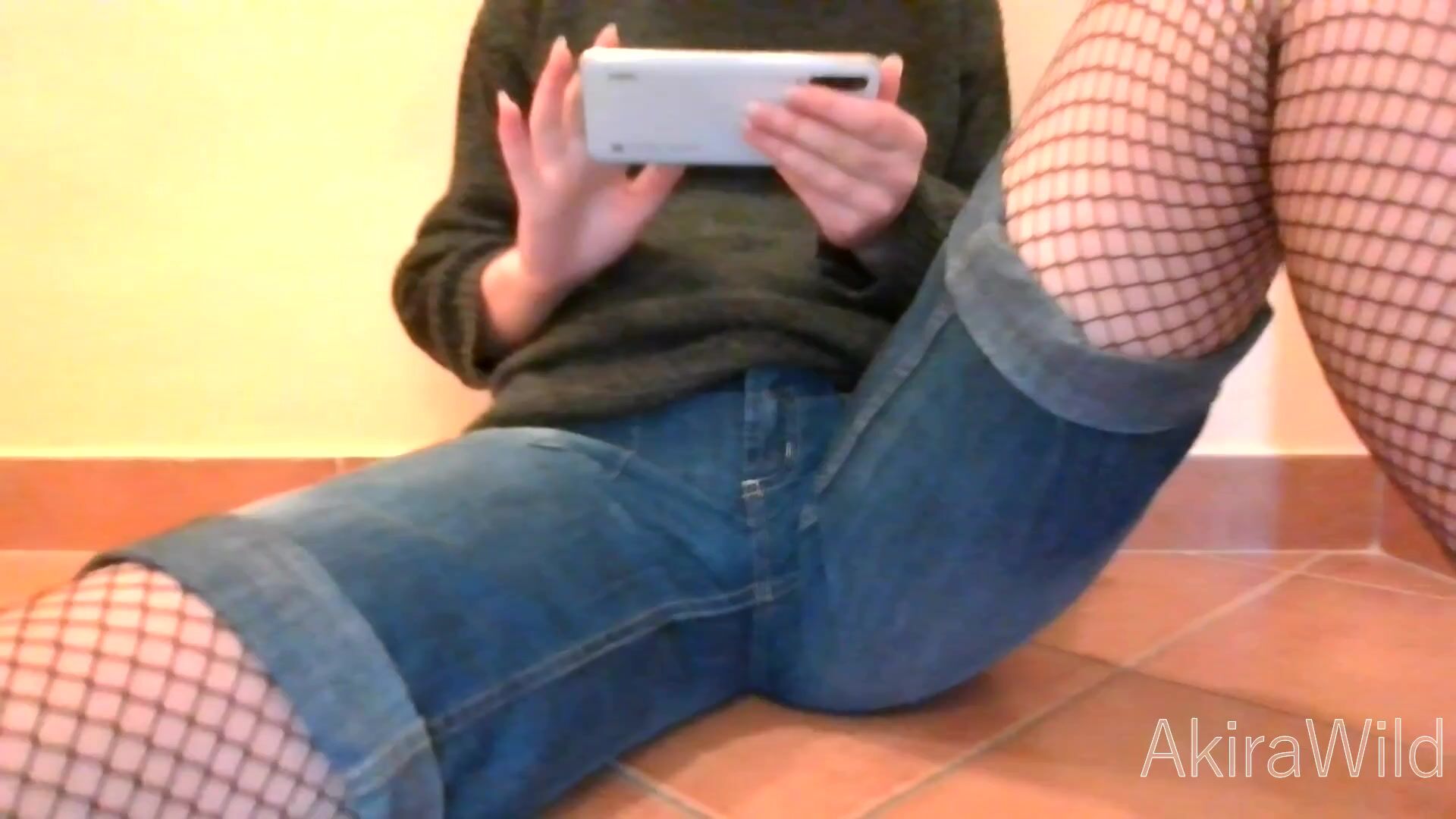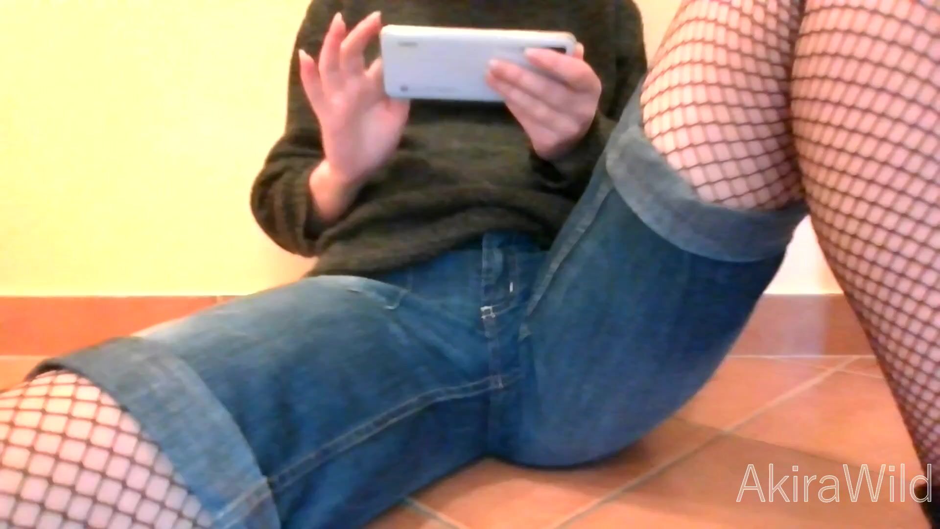 Japanese gamer girl doesn't wanna pause game ( Among Us ) wets panties instead