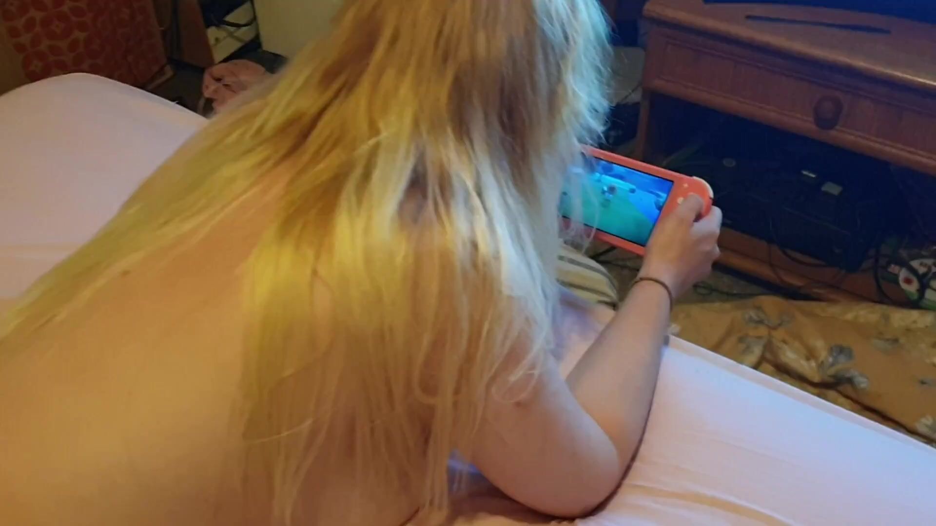 Cute Gamer Girl Casually Pisses The Bed While Gaming!