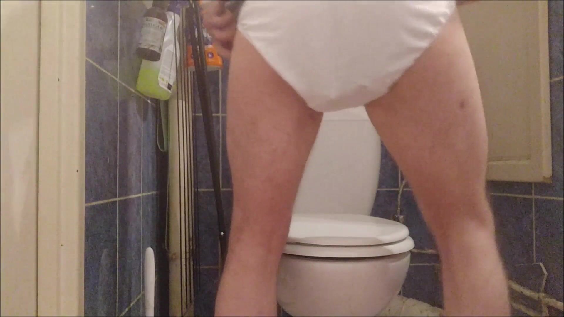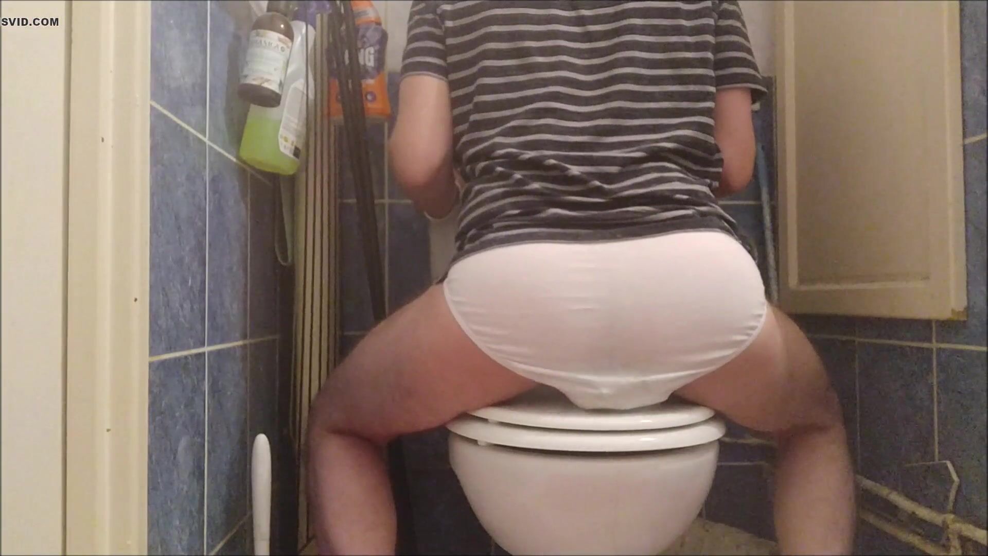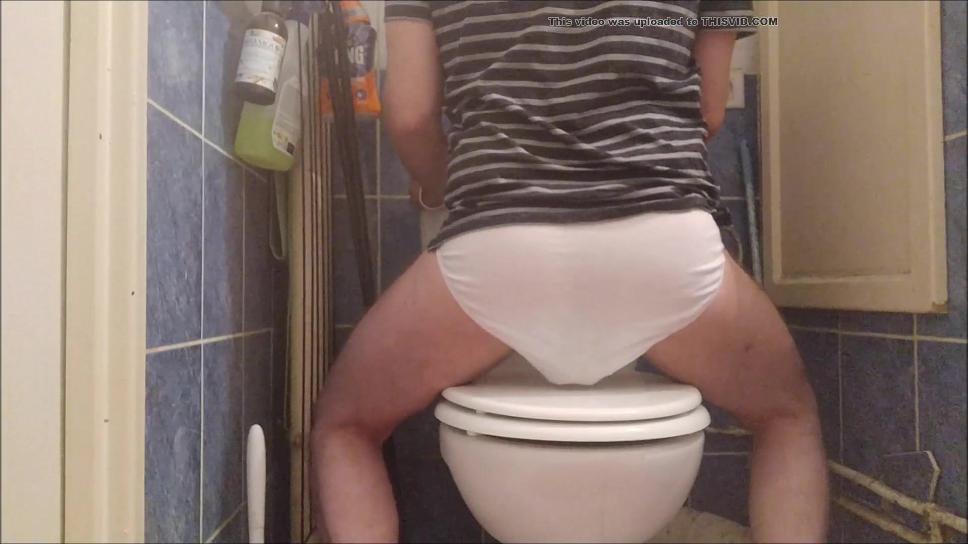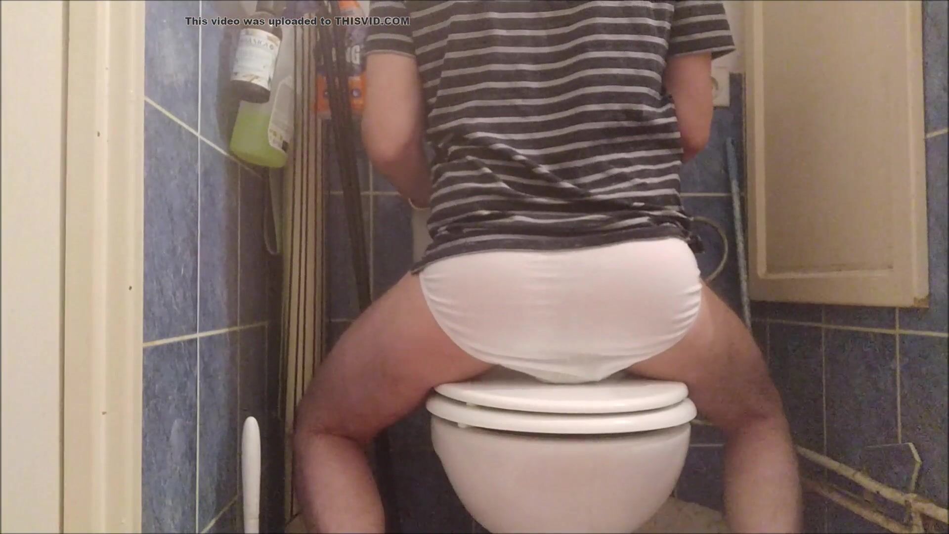 Guy drops a huge load in underwear and sits on it