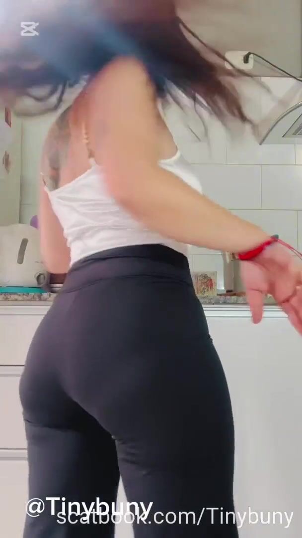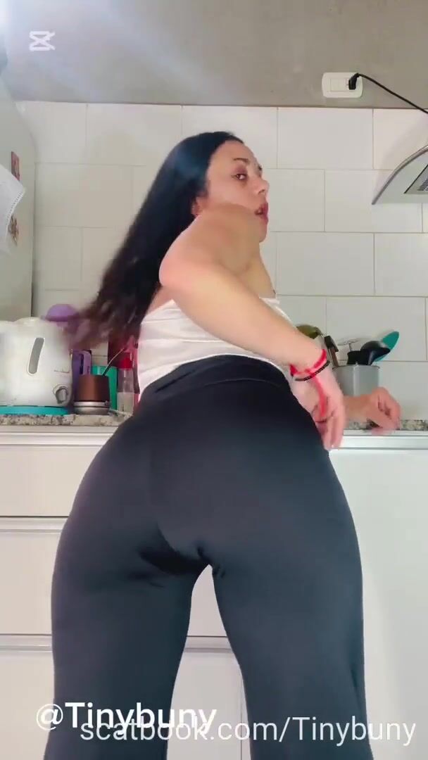she shits in her black leggings and in her gray panties