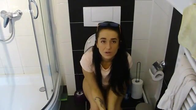 beautiful brunette shitting on toilet