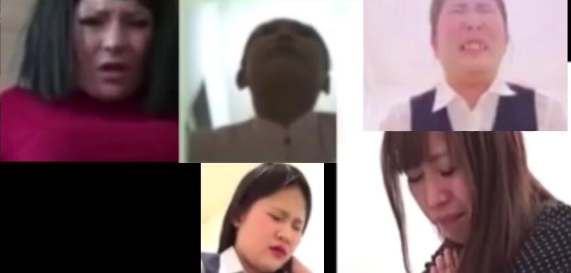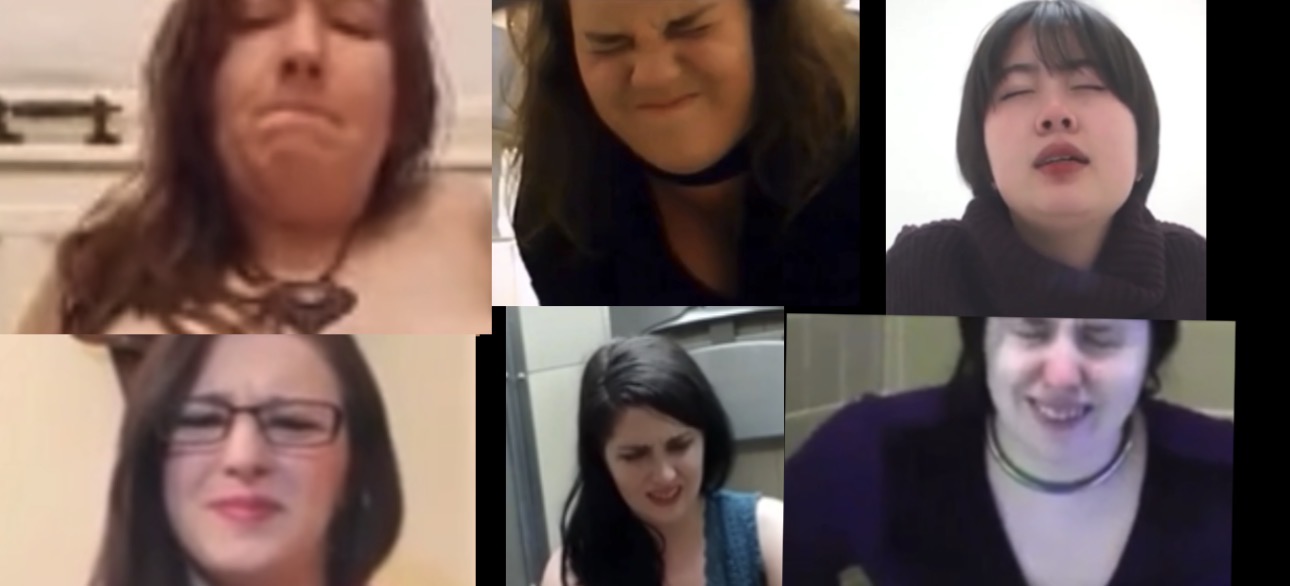 Hard pooping straining faces with sound