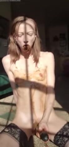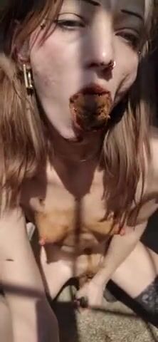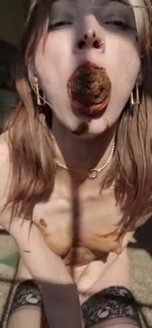 Asian girl tastes her shit