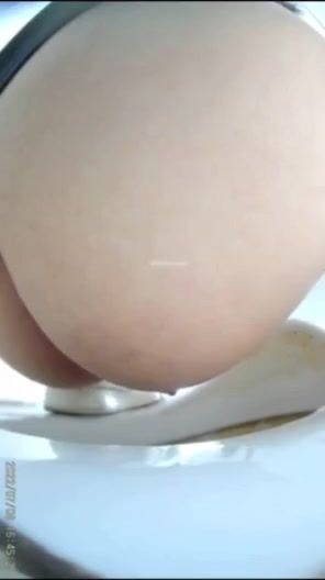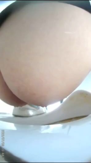 Chinese girl defecating and urinating in the toilet.