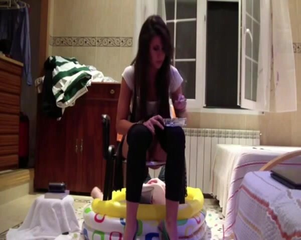 Spanish girls shit on toilet slave