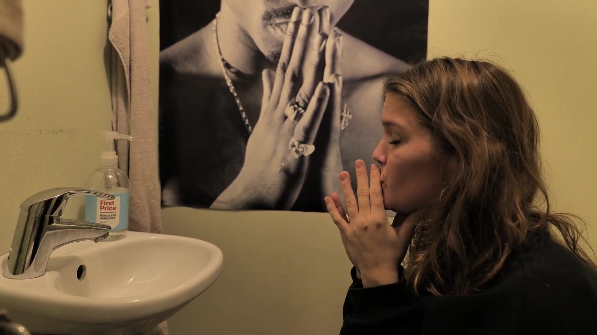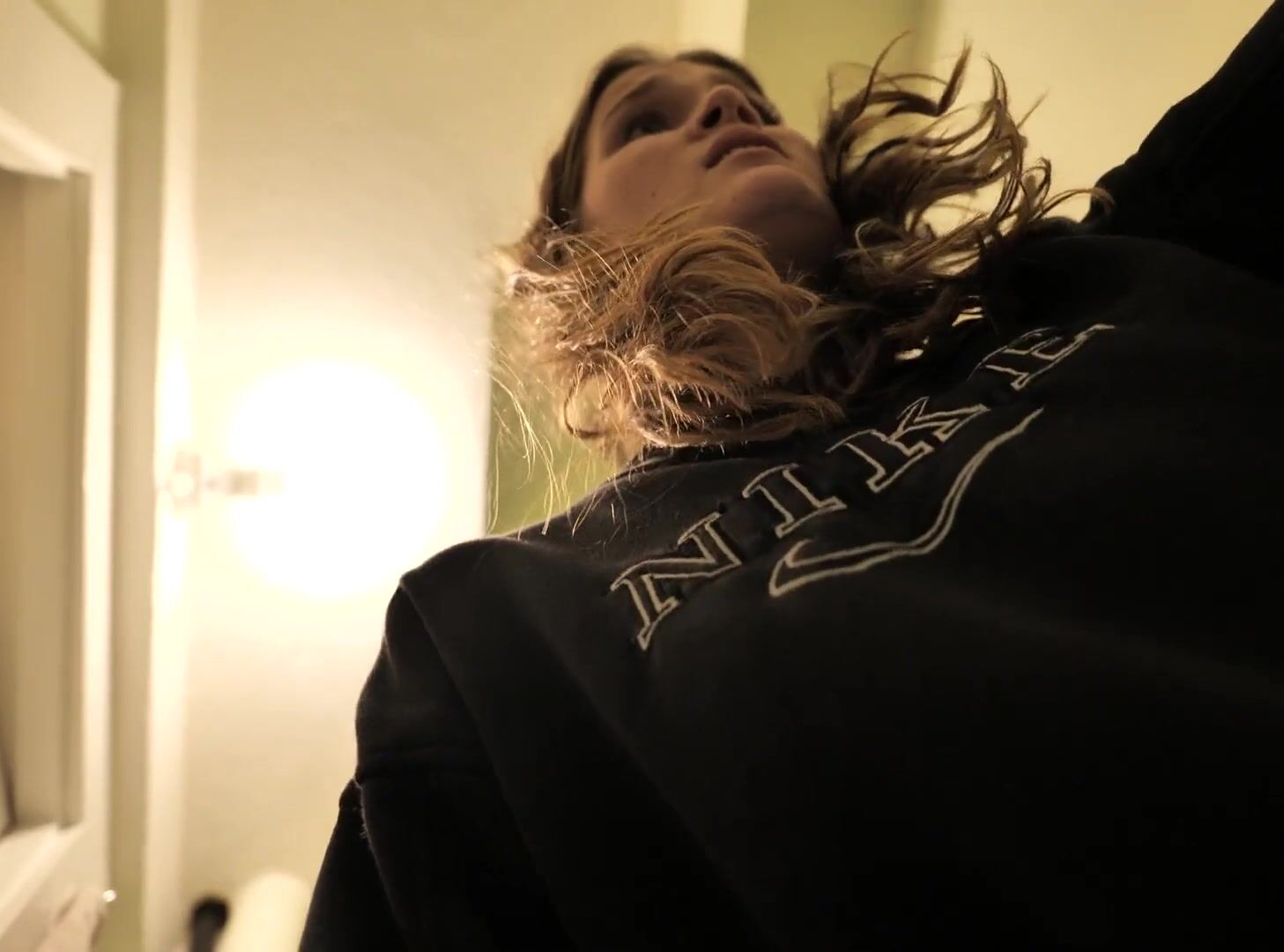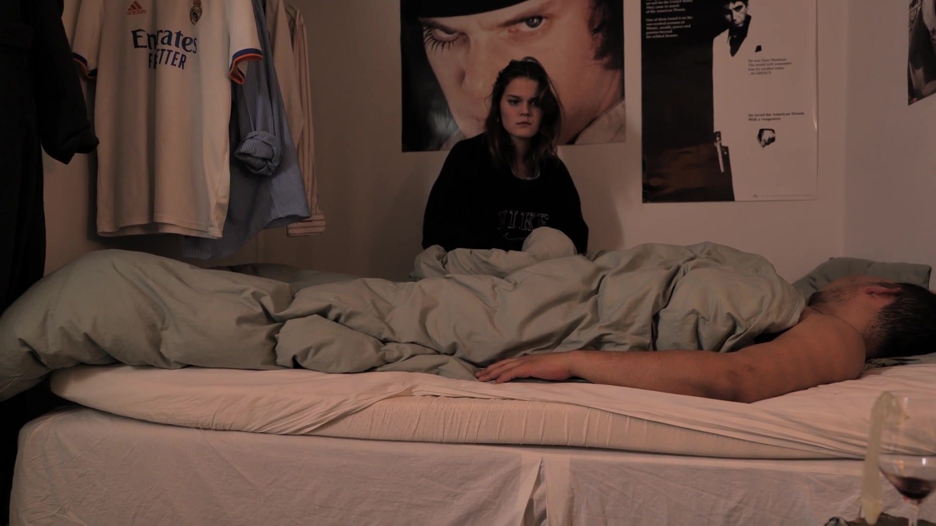 Girl wakes up and has to take a poop