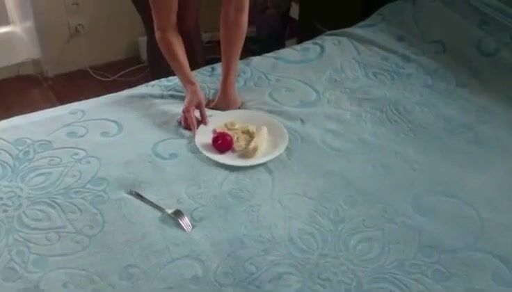 Busty girl eats her shit with banana