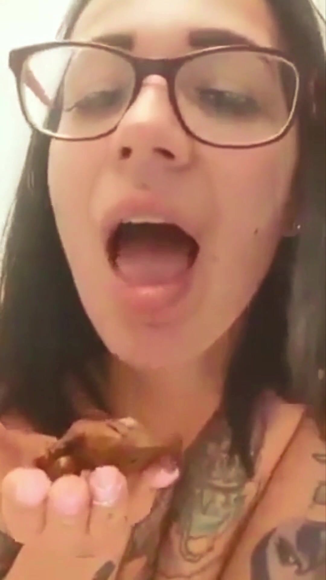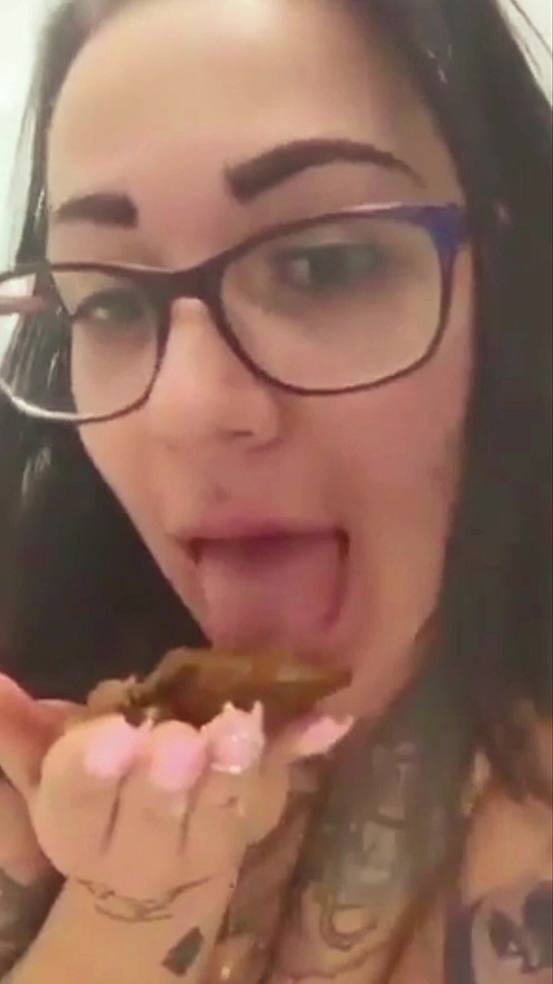 Chubby girl licking her shit