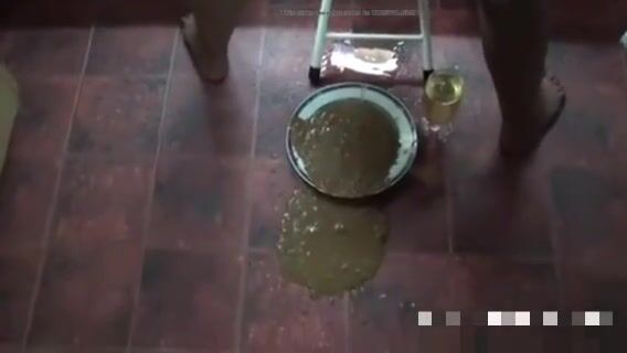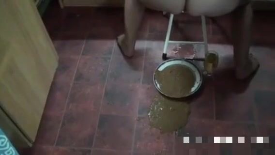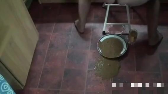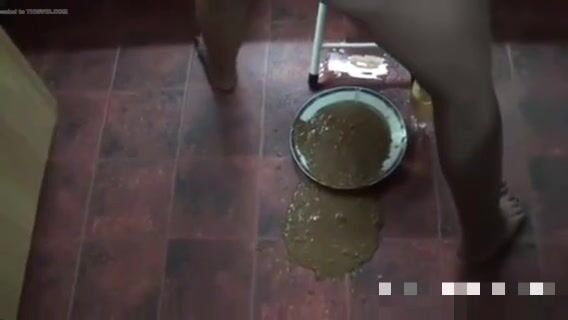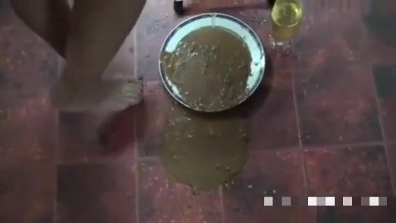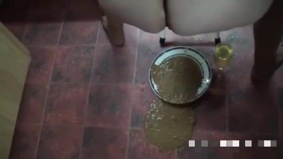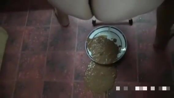 Girl open wide legs and shitting on the toilet floor