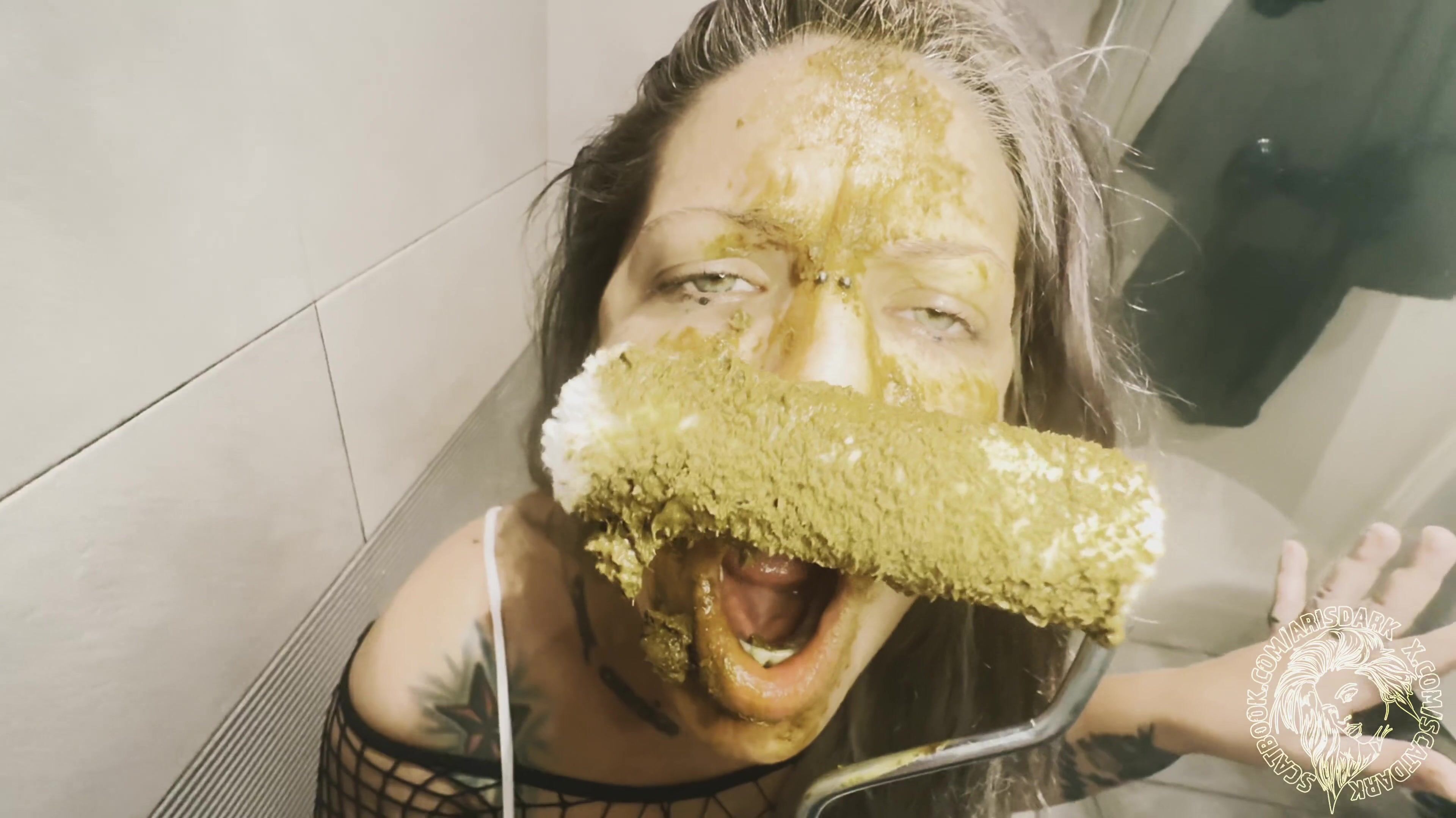 Girl shitting in the shower and smering it on body