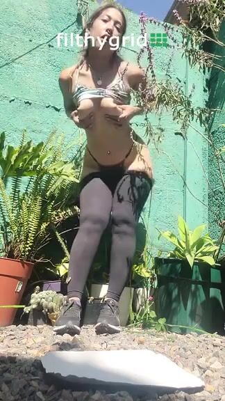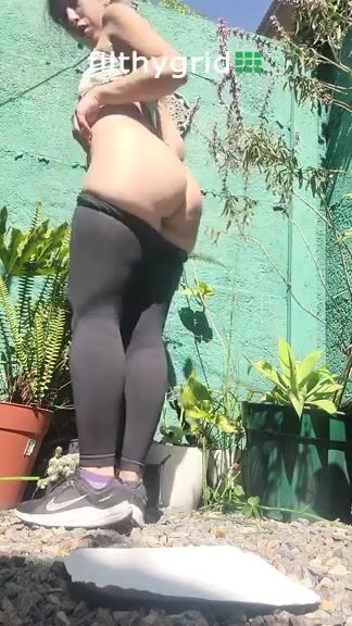 Latina caca en extérieur