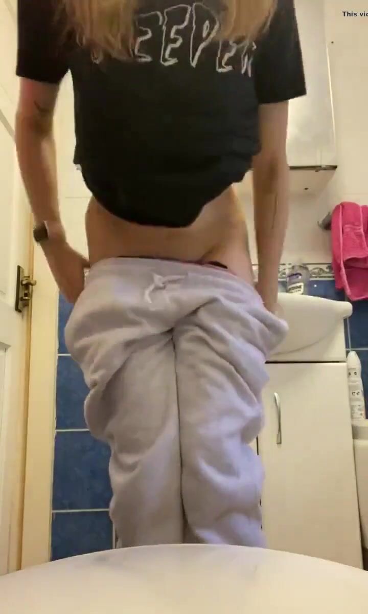 Teen blonde shitting on toilet