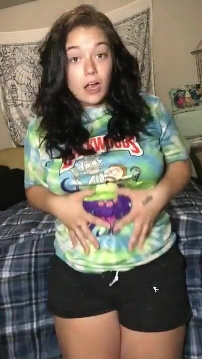 Cute chubby chick shits on her bed bc her belly hurts