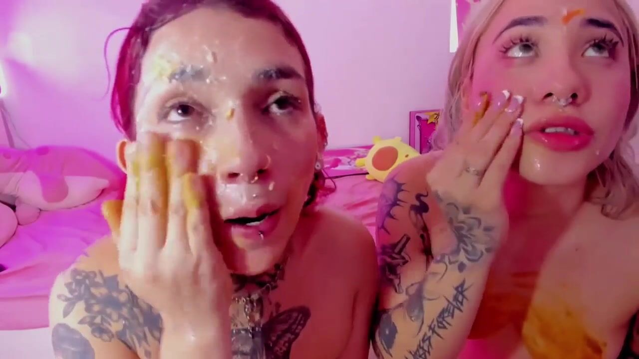 Two latinas playing with scat, puke, spit (Part 1)