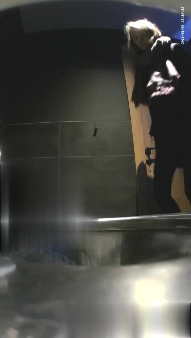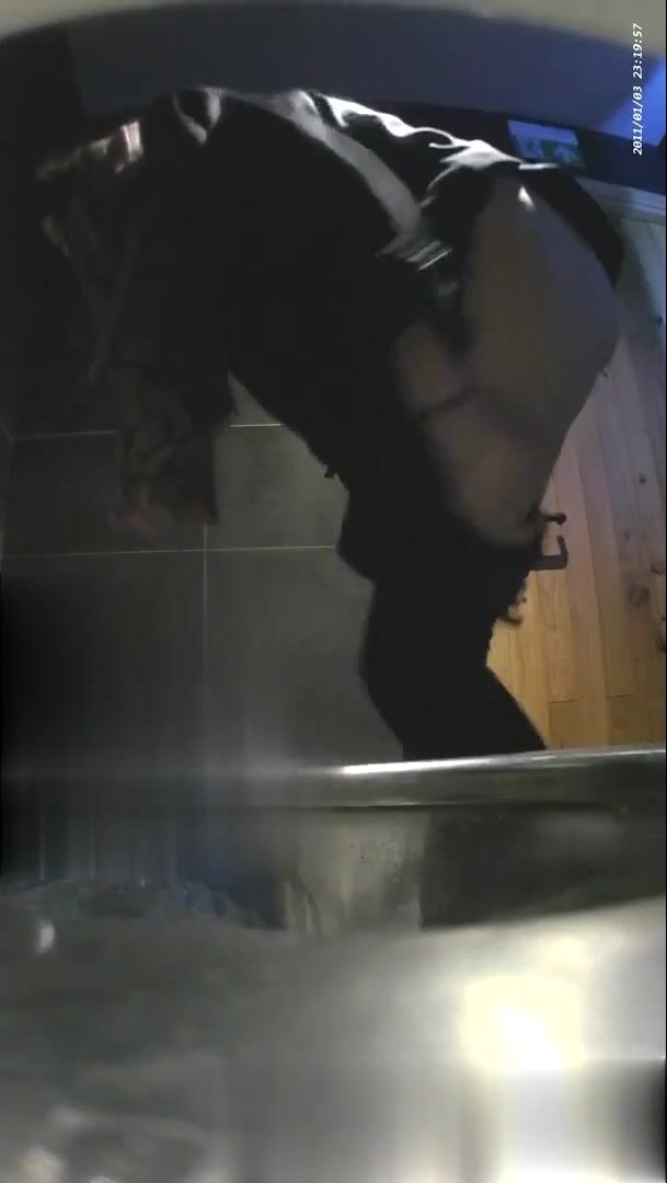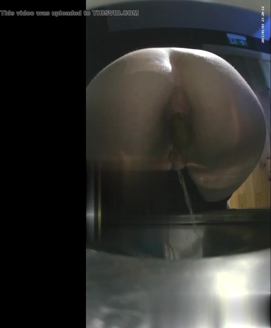 Girl open wide legs and shitting on the toilet floor