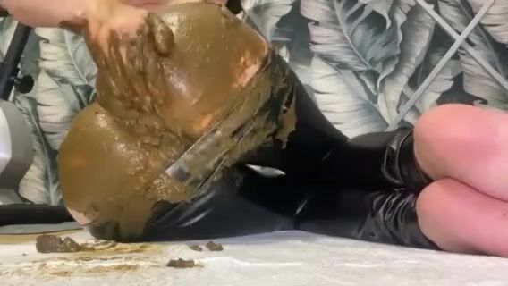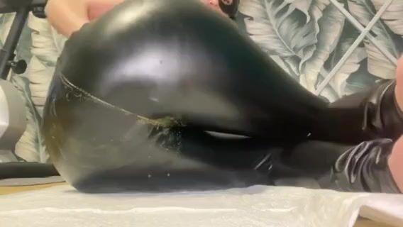 Huge poop in tight leather leggings - video 2