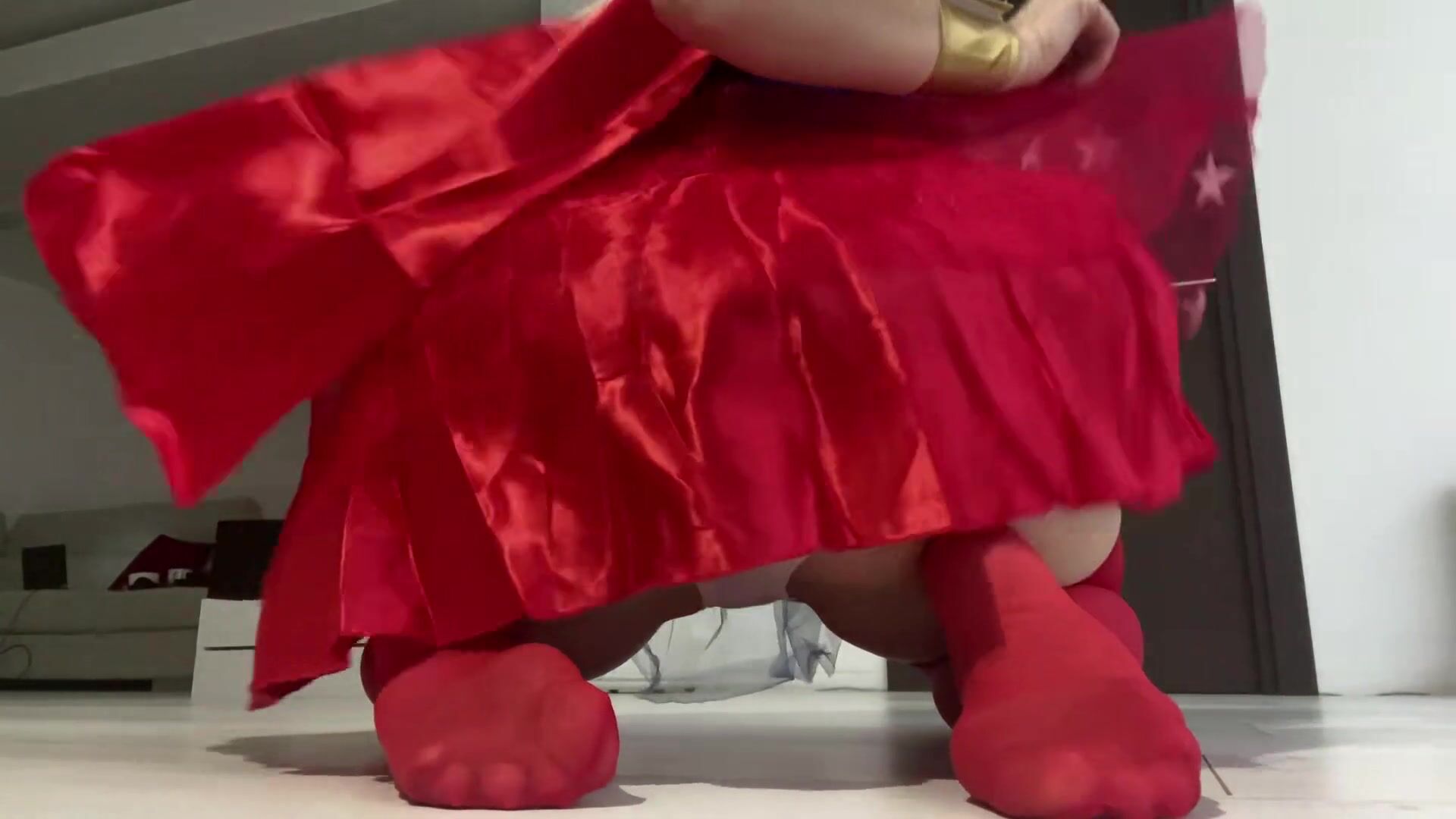 Huge shit and masturbation in super girl outfit