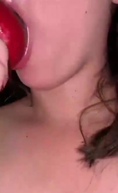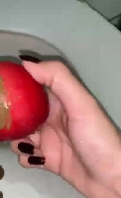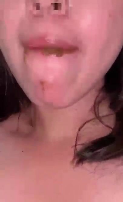 Girl eat apple with scat