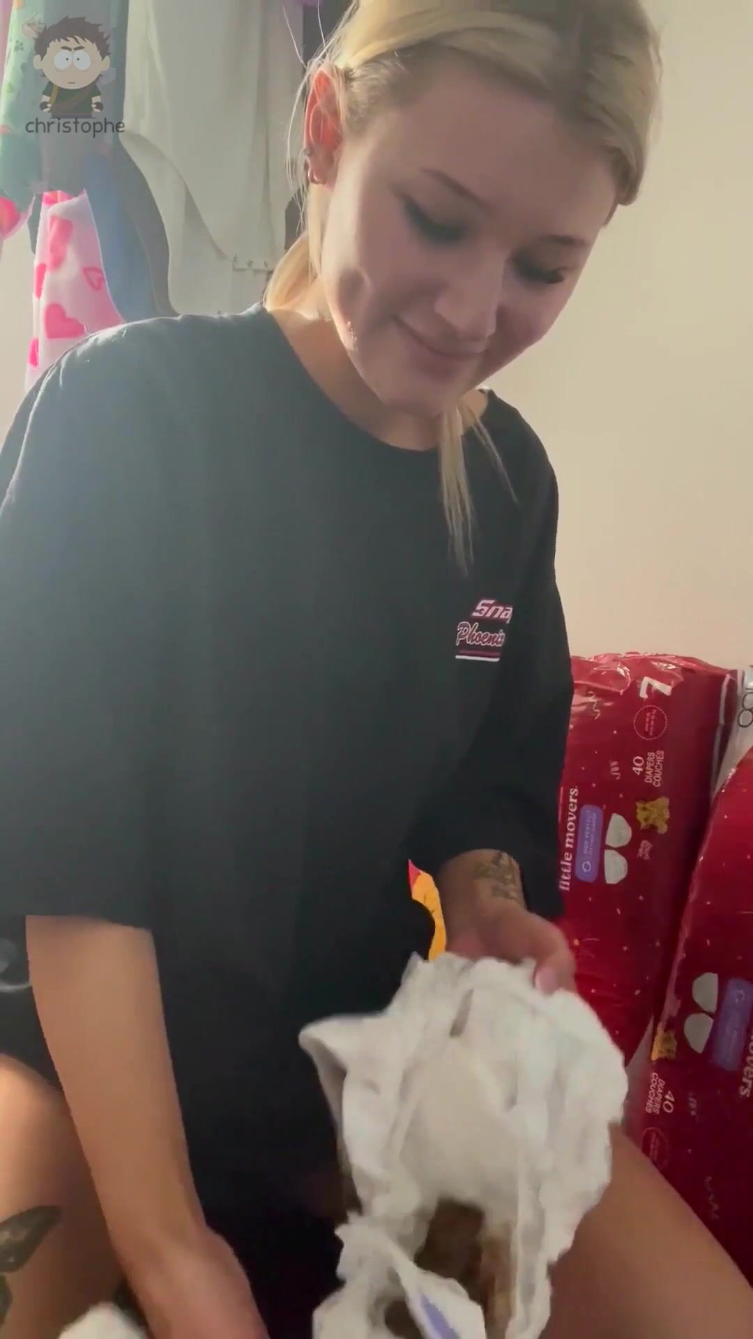 Blonde Hottie Shitting In Her Huggies