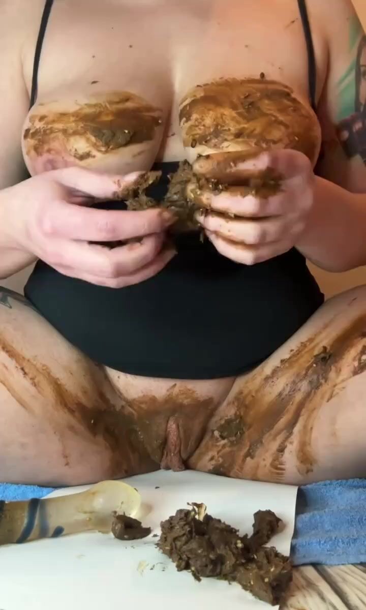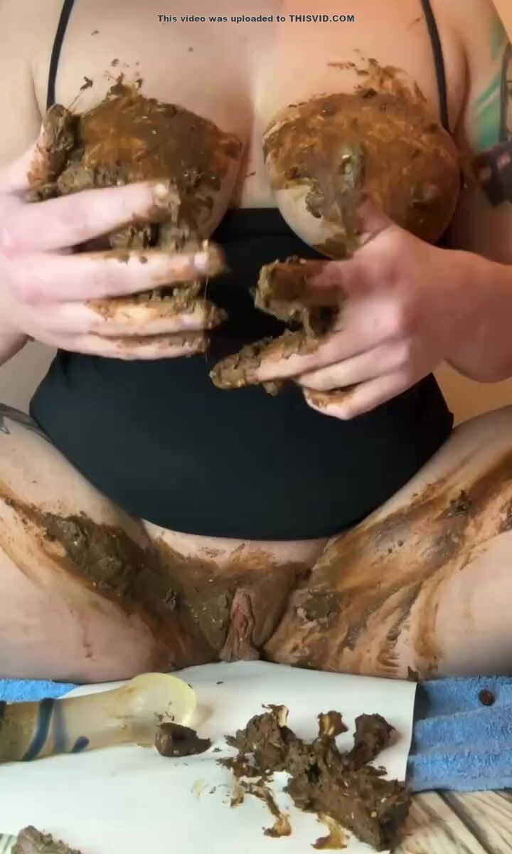 Bella tetona masturbándose con su mierda