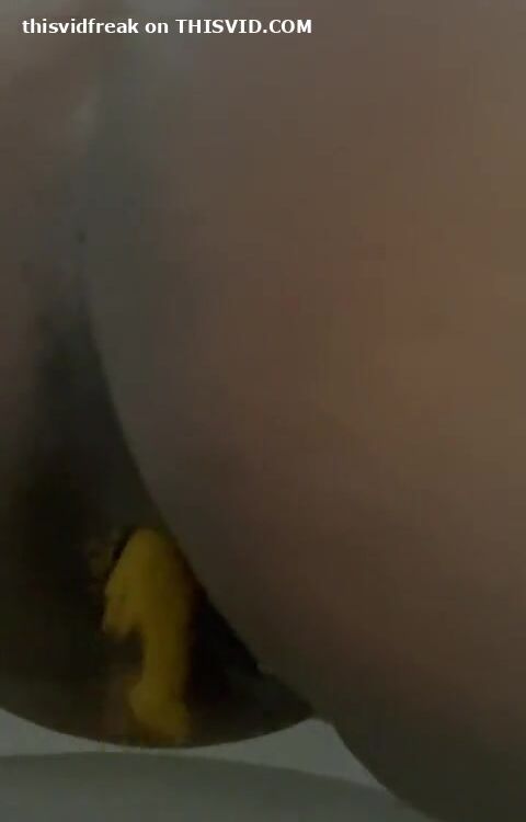 Woman on her side births huge turd.