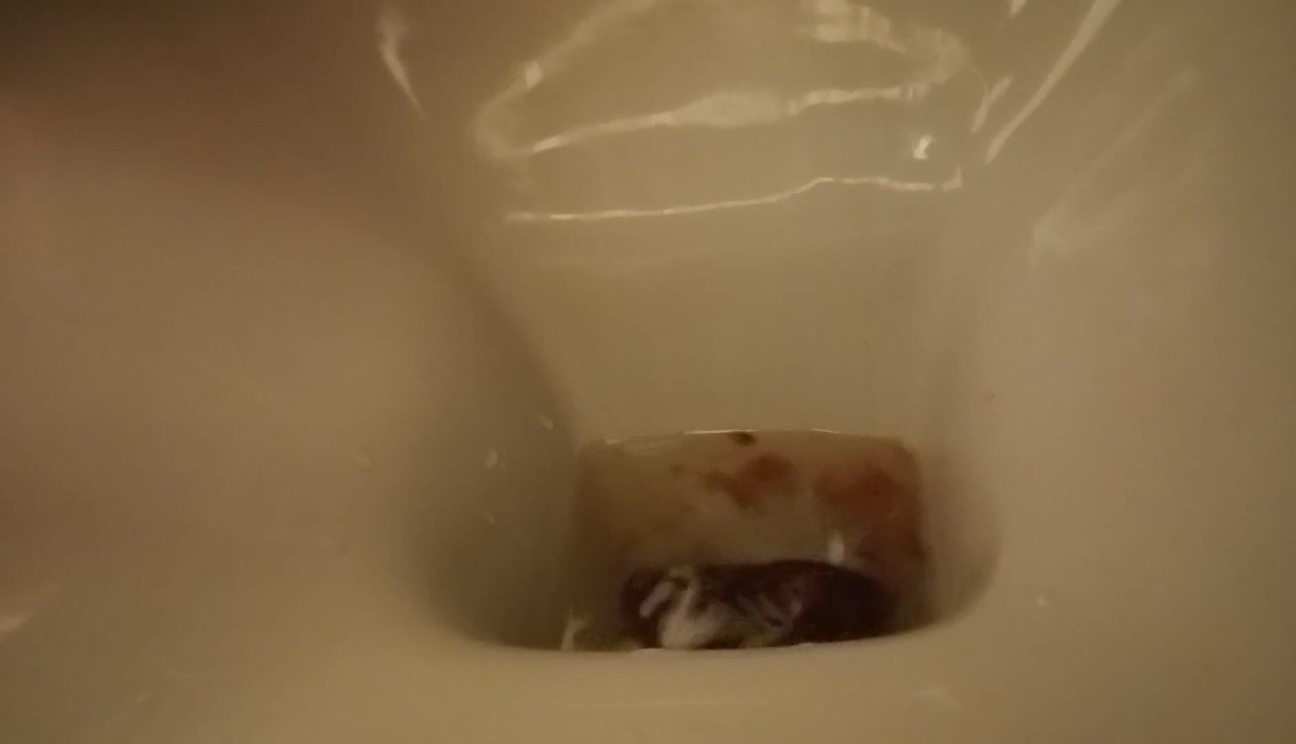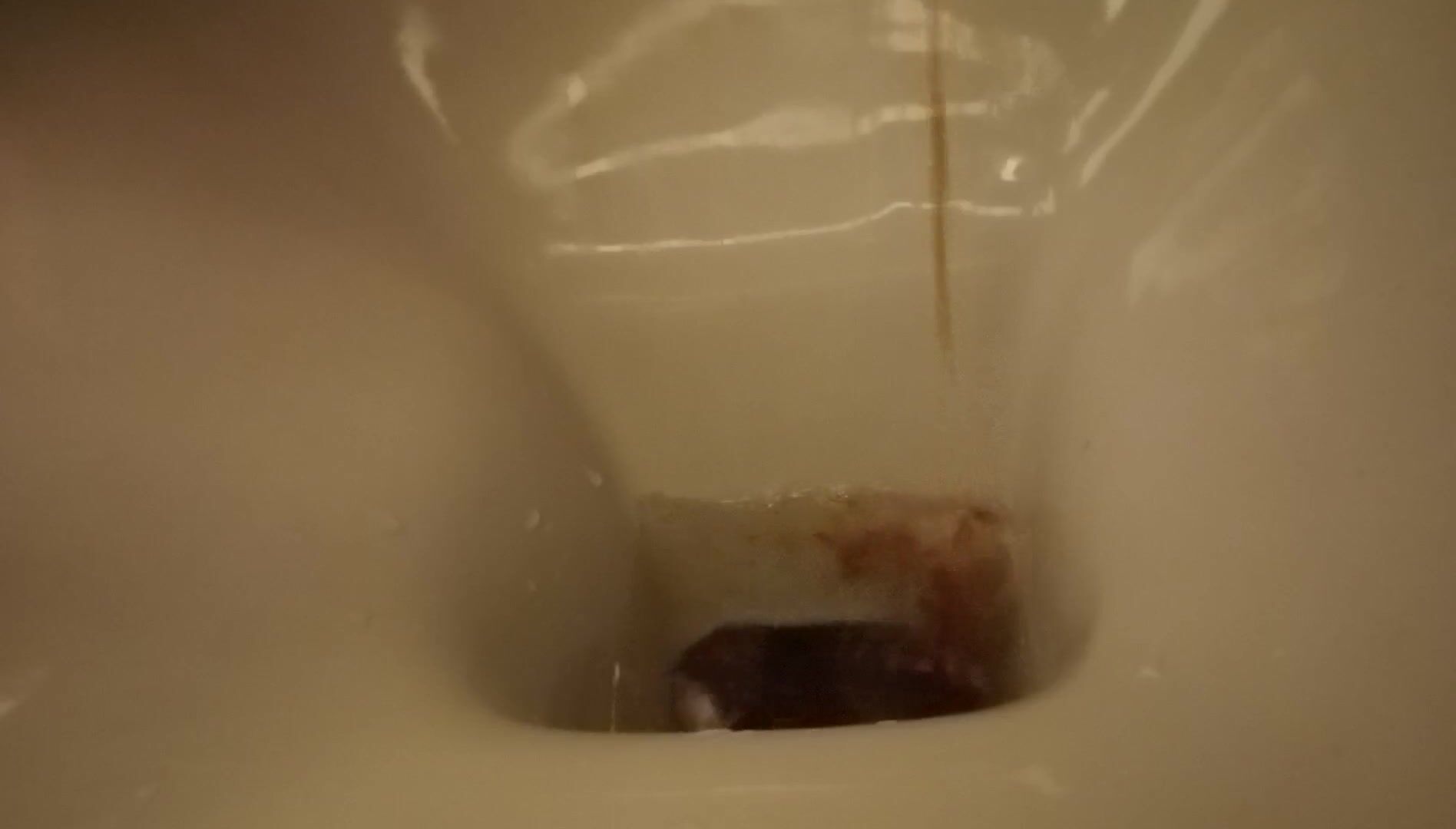 Girl open wide legs and shitting on the toilet floor