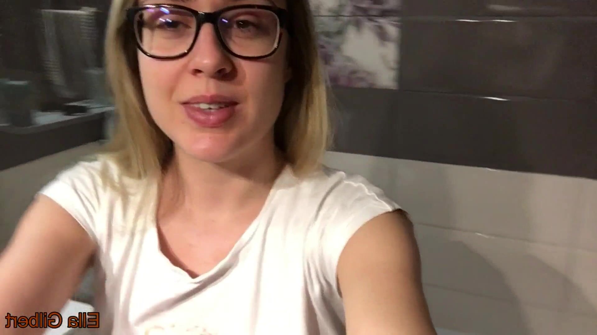 cute and sexy naked dark blonde crapping and peeing