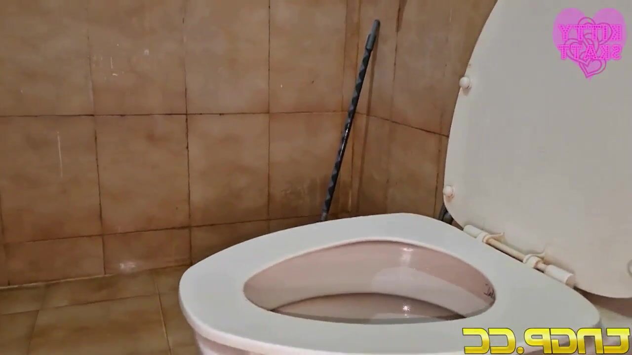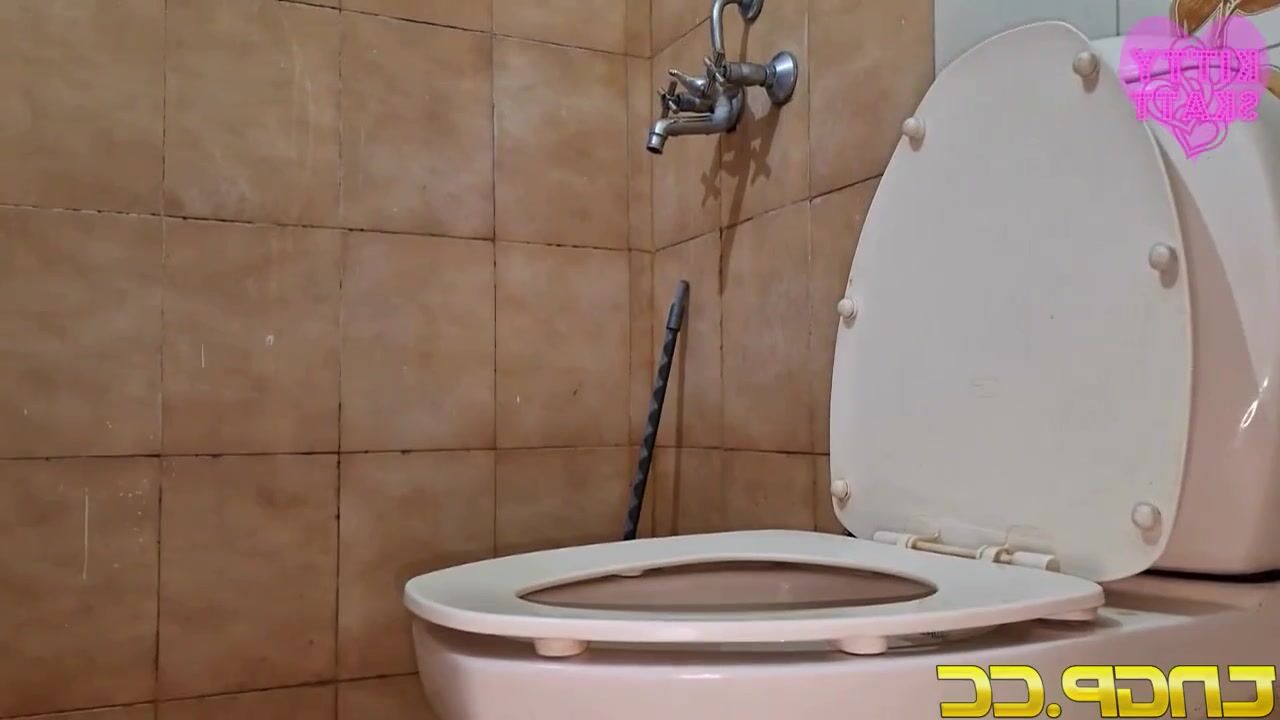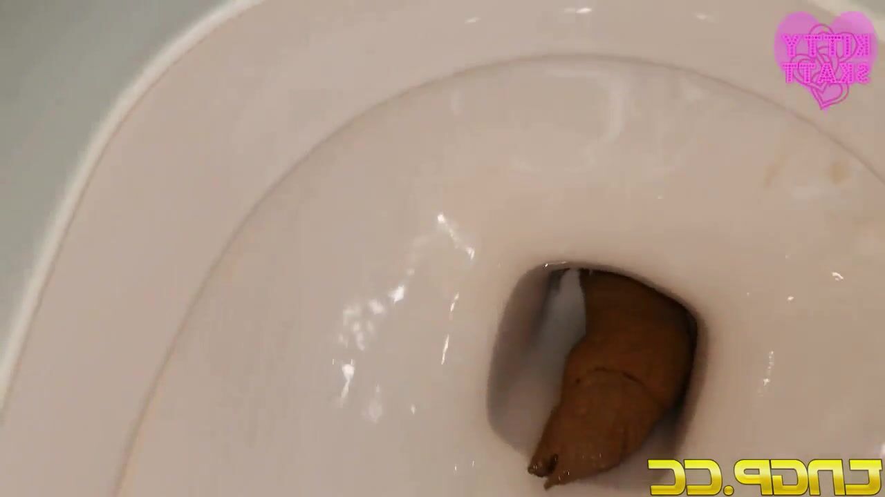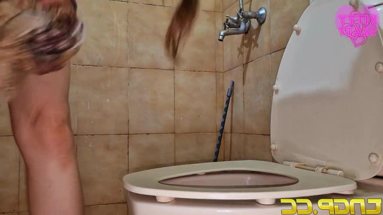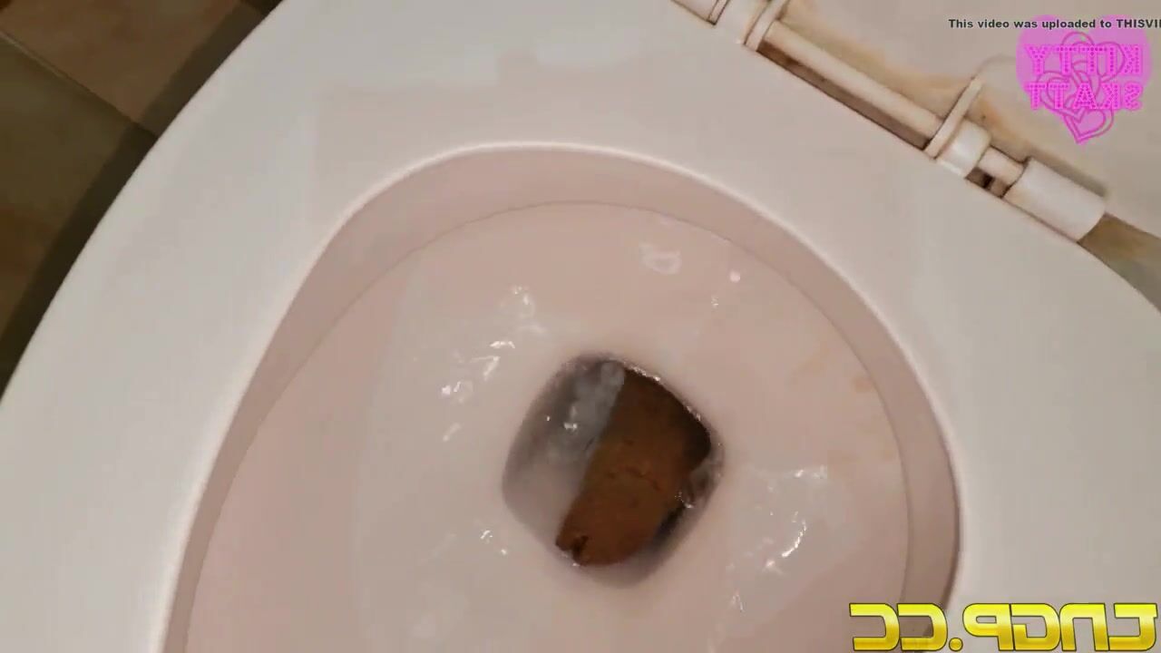 Girl does a massive log that clogs the toilet