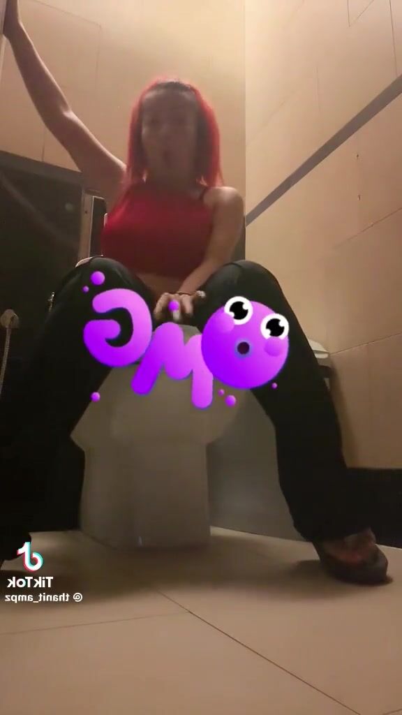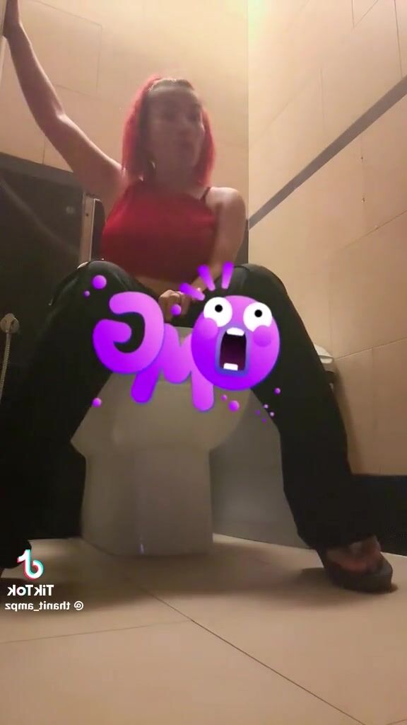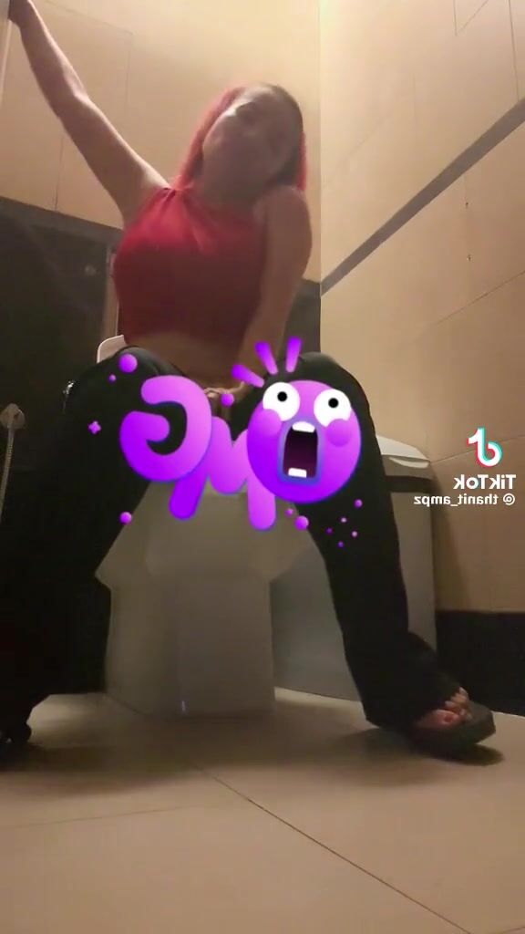 While in a bar, girl messes in her diaper.
