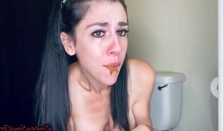 Stupid skinny bitch shits eats her shit and pukes