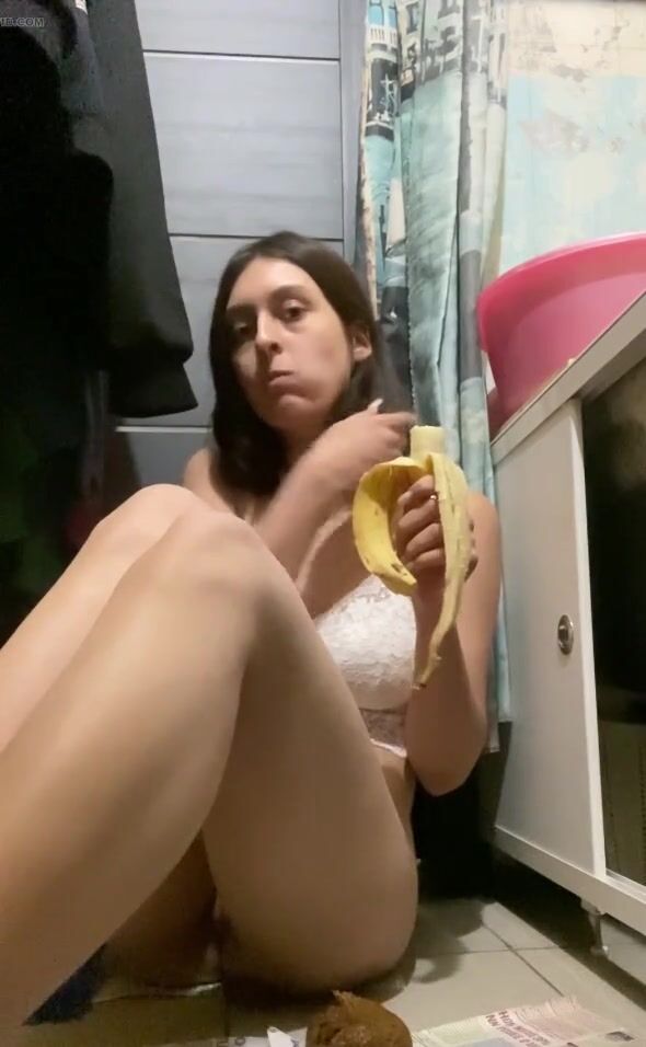 Hot teen shits while eating banana